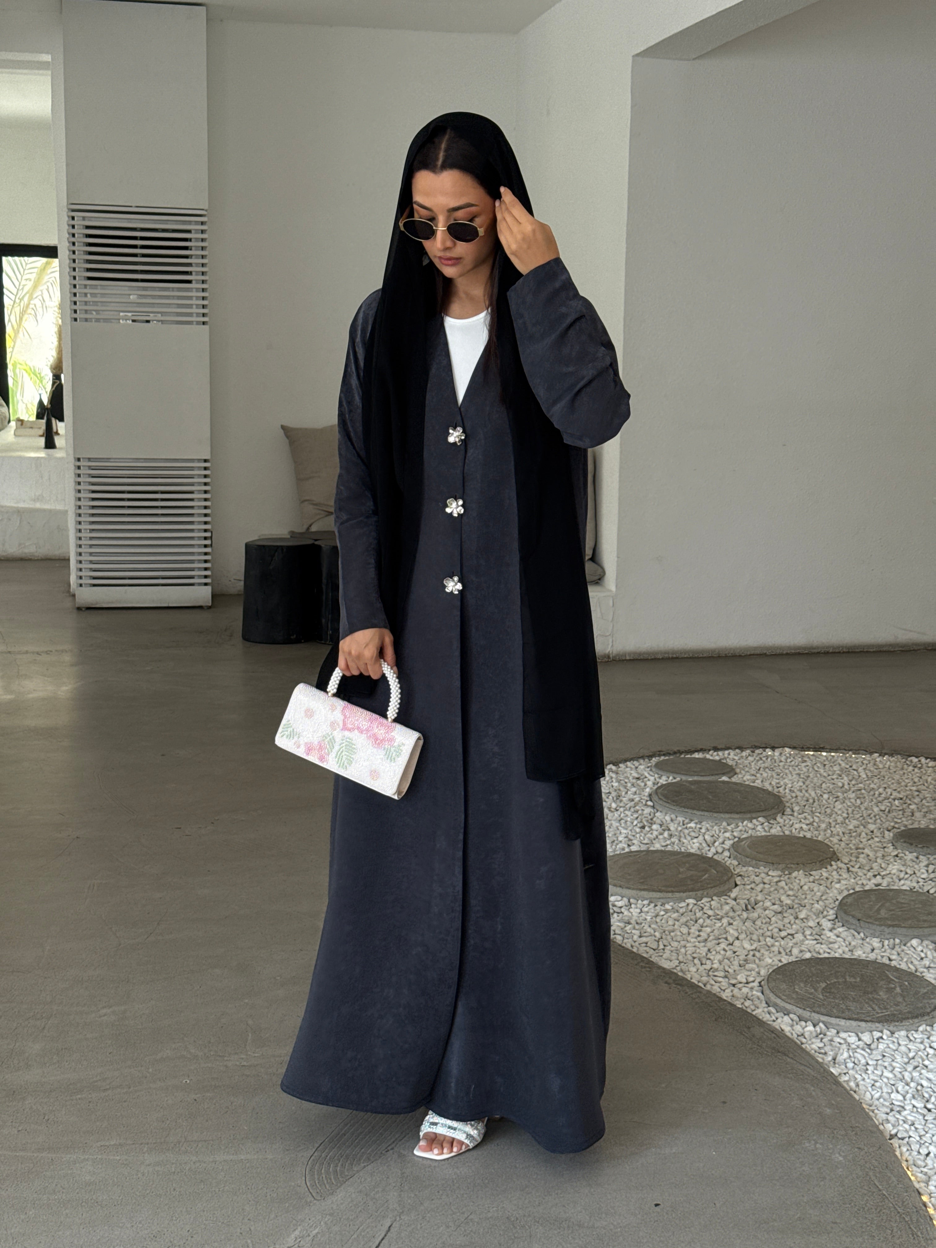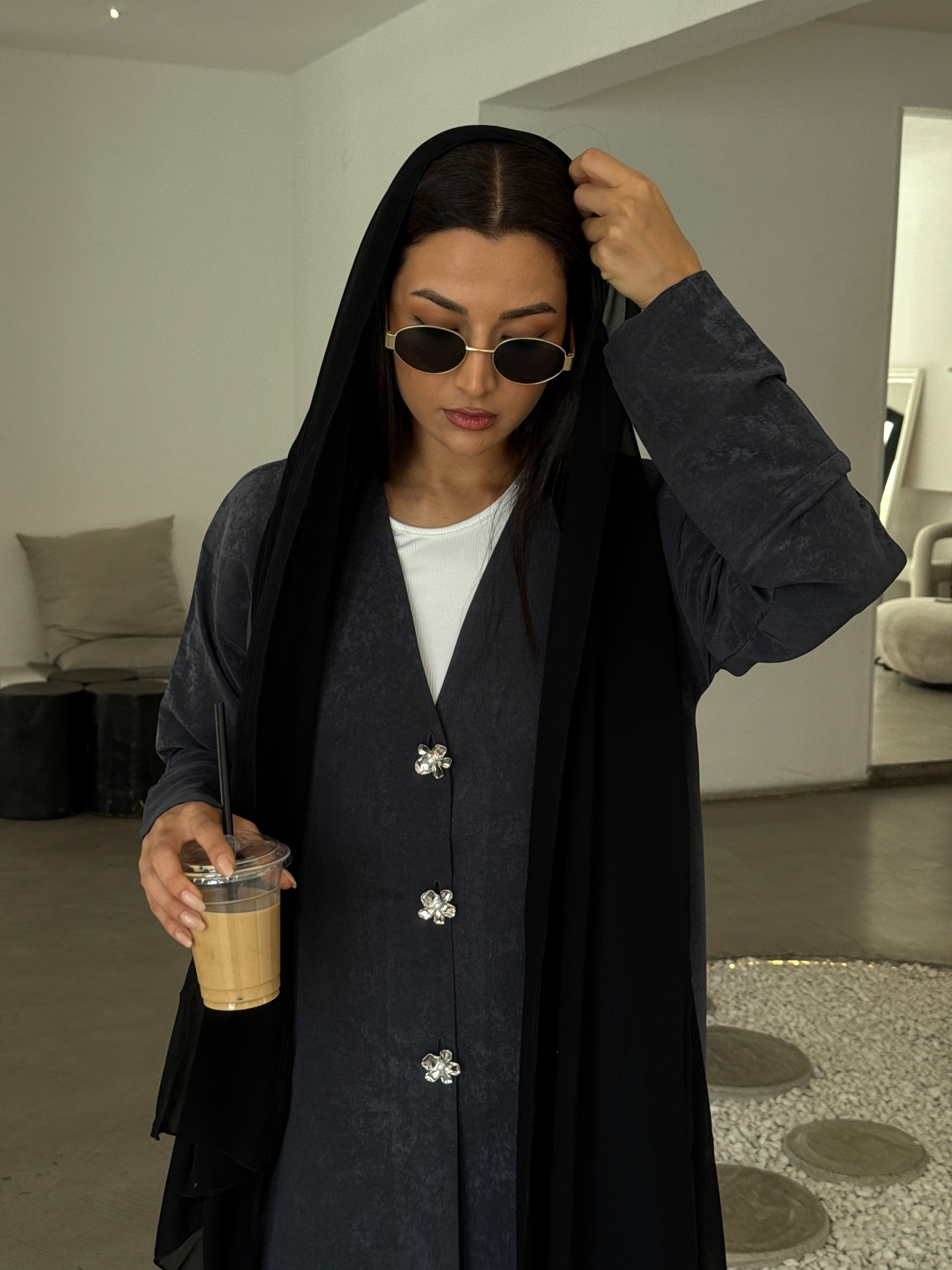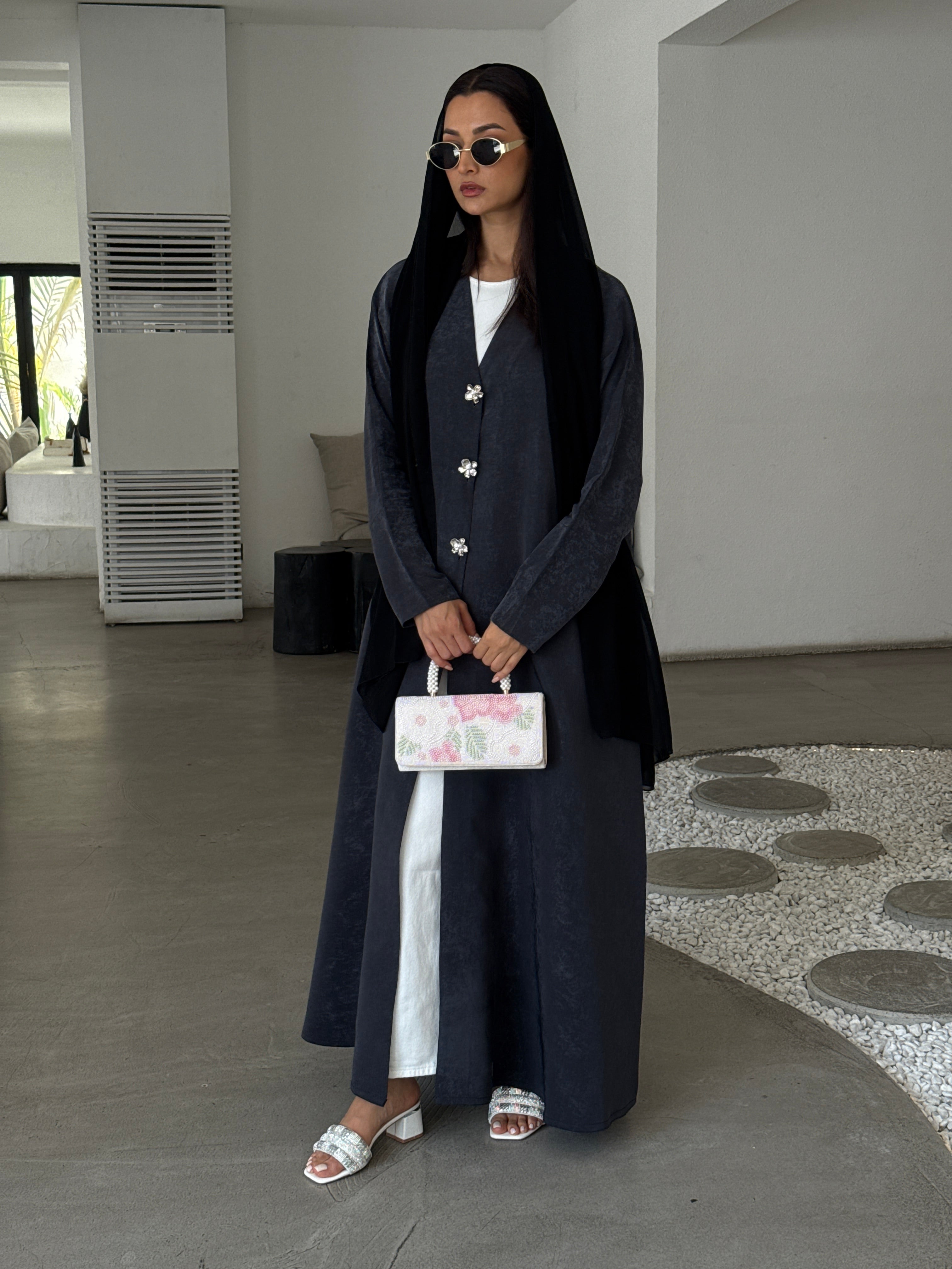 GOLBARG Black With Silver Handwork Abaya - Contessa Collection