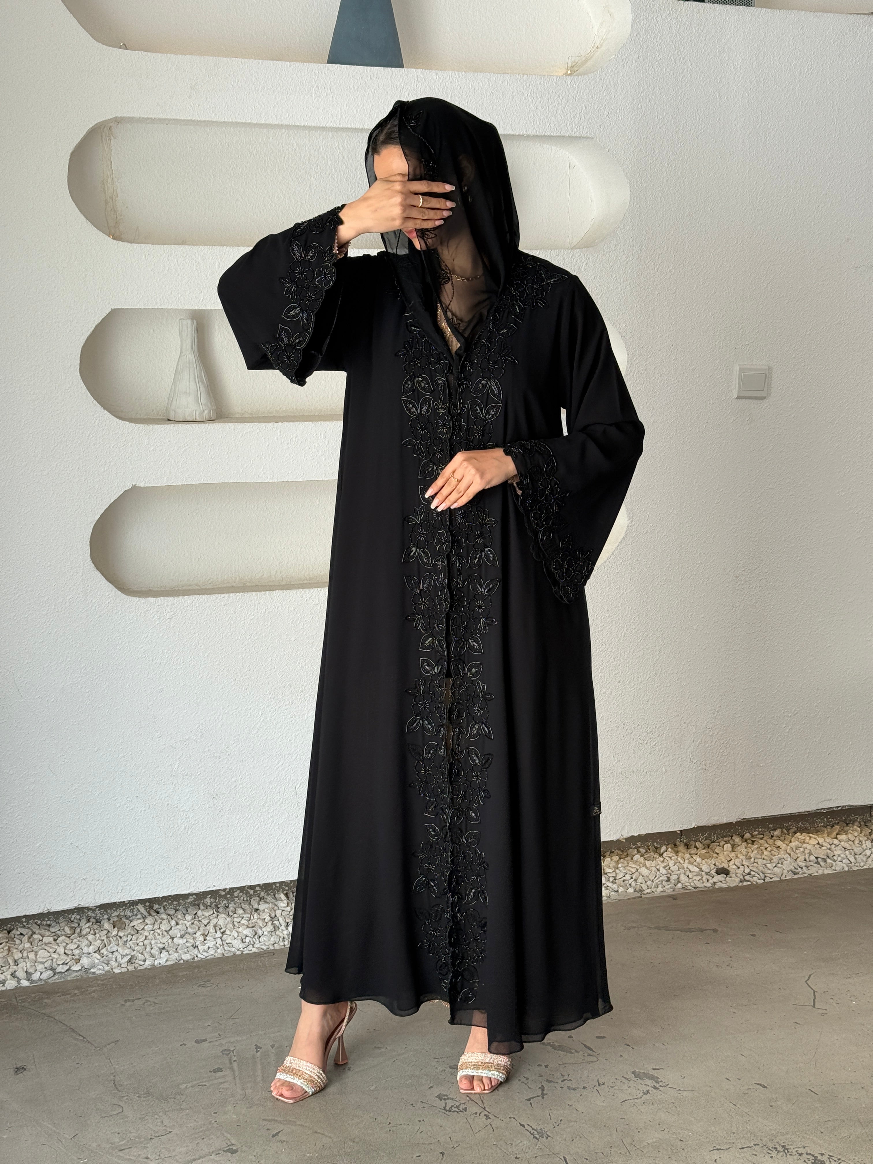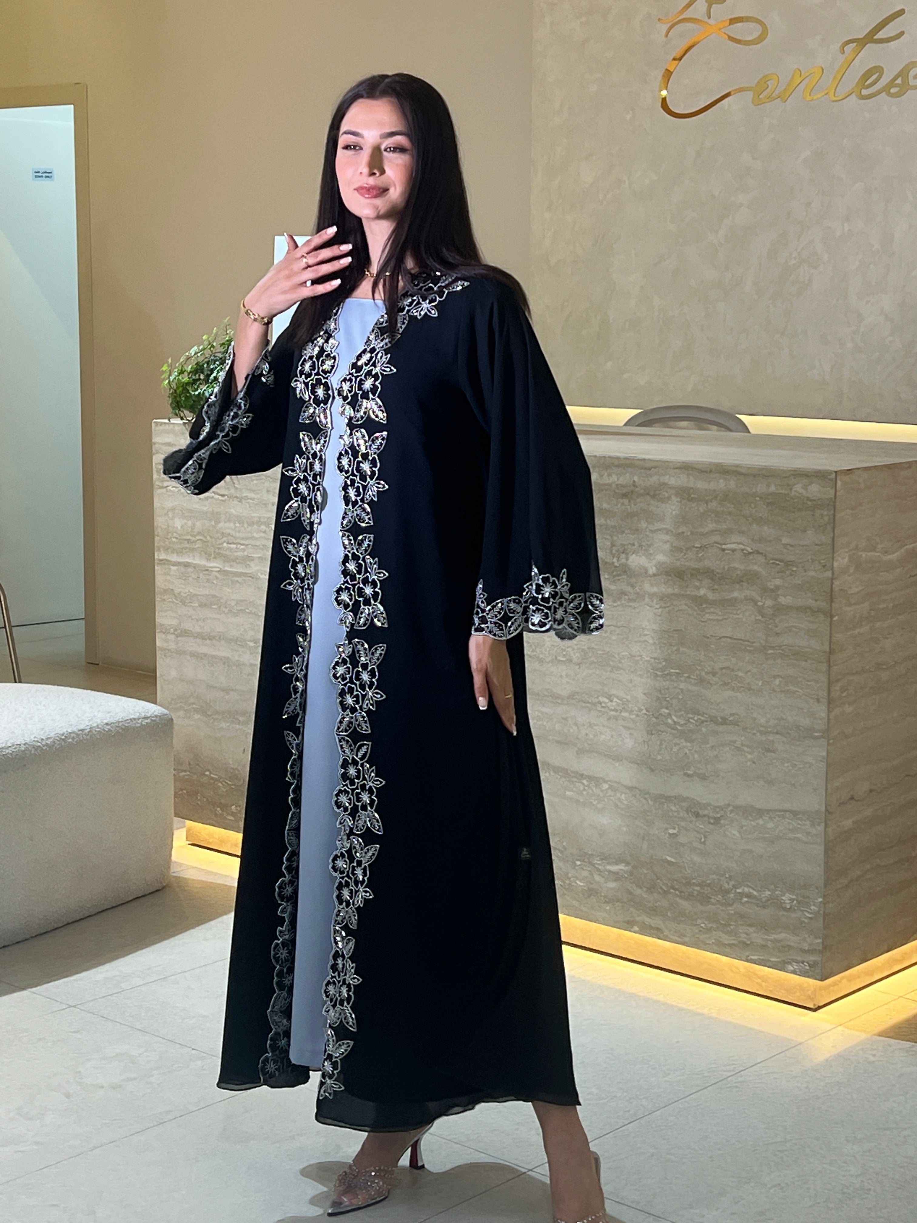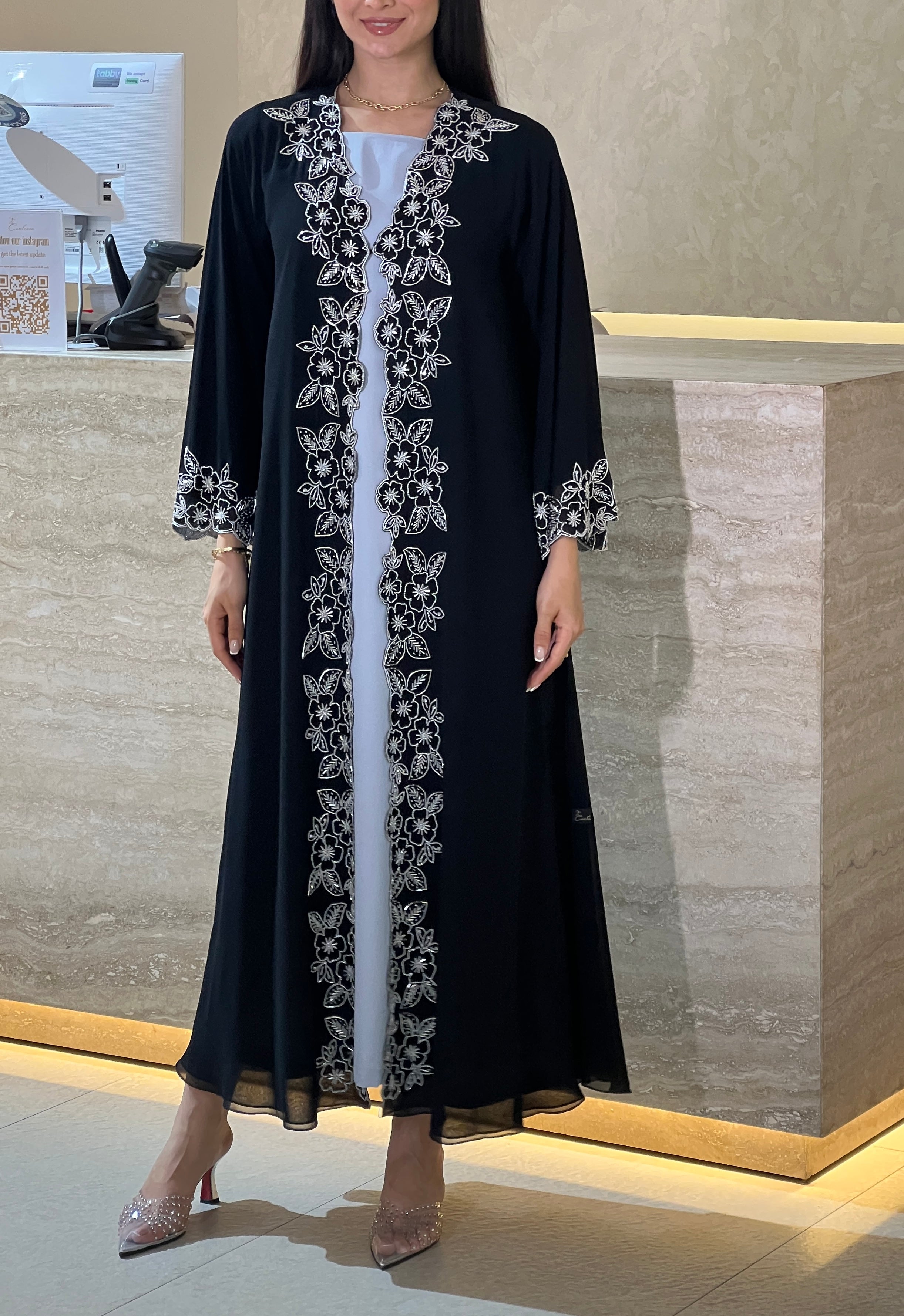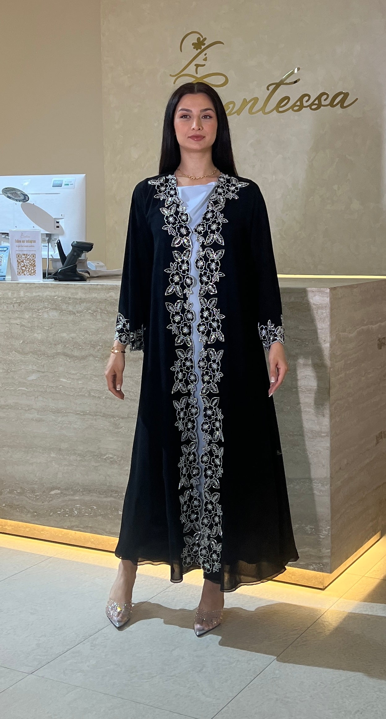 GOLBARG Black With Silver Handwork Abaya - Contessa Collection