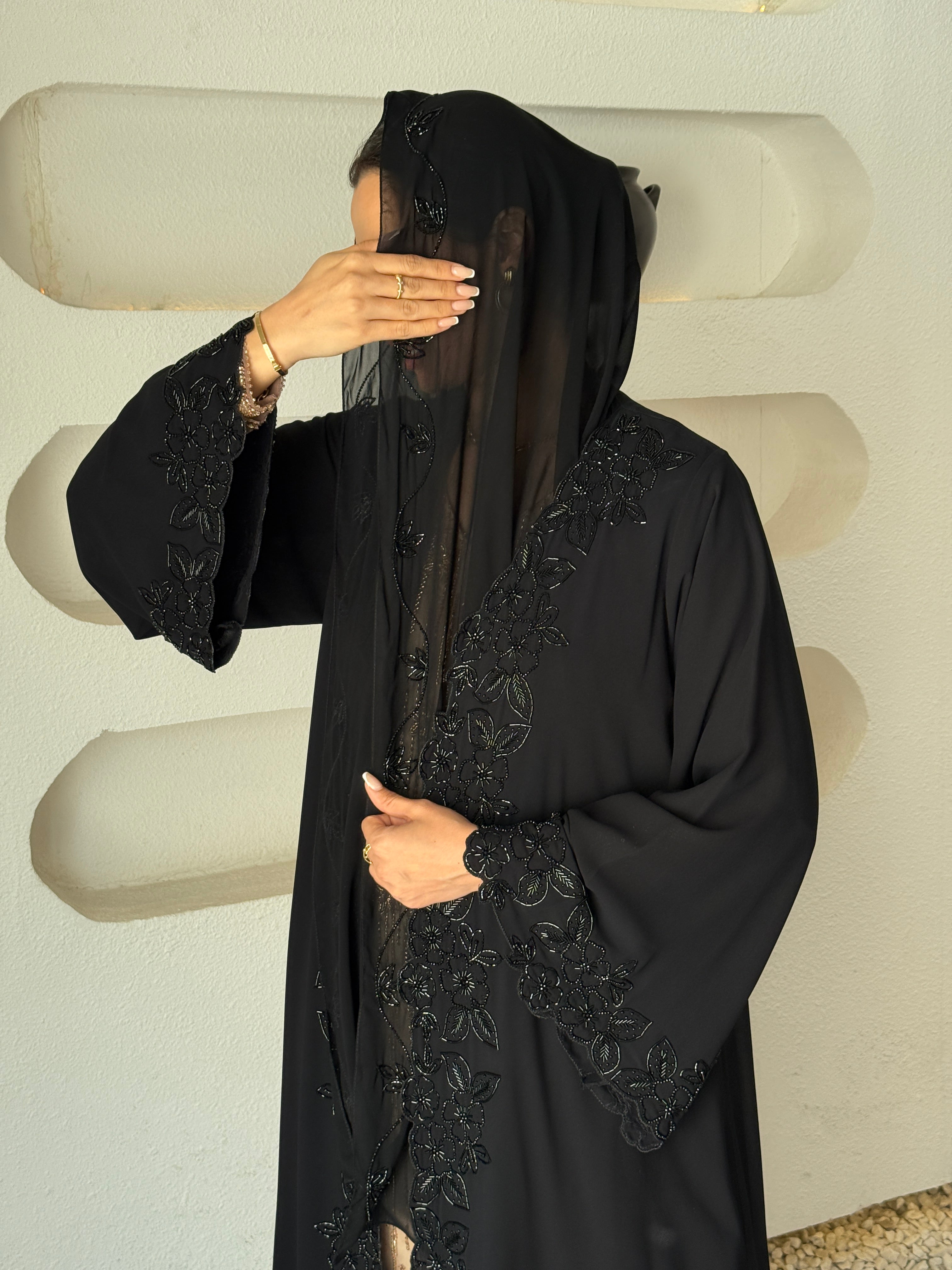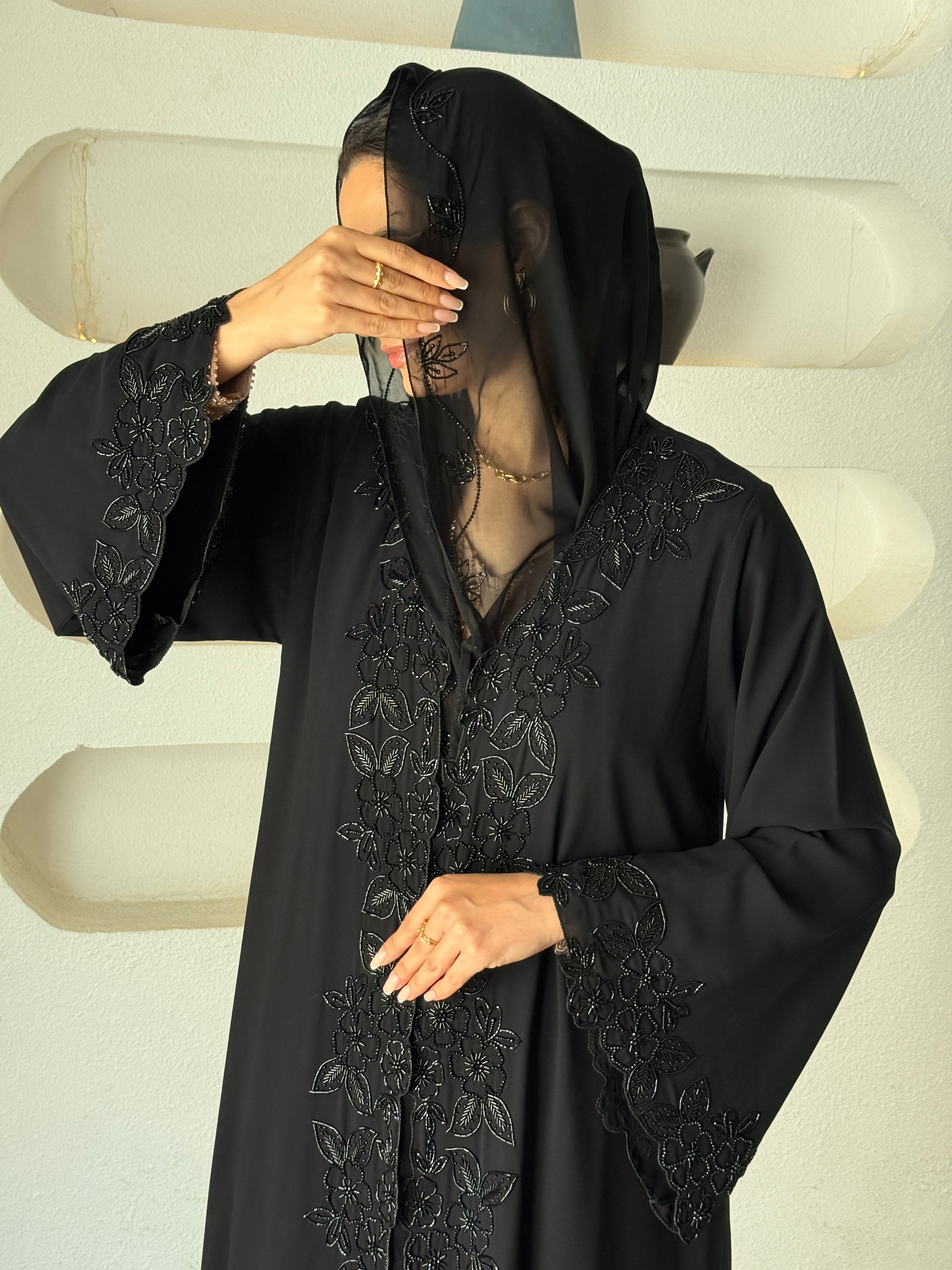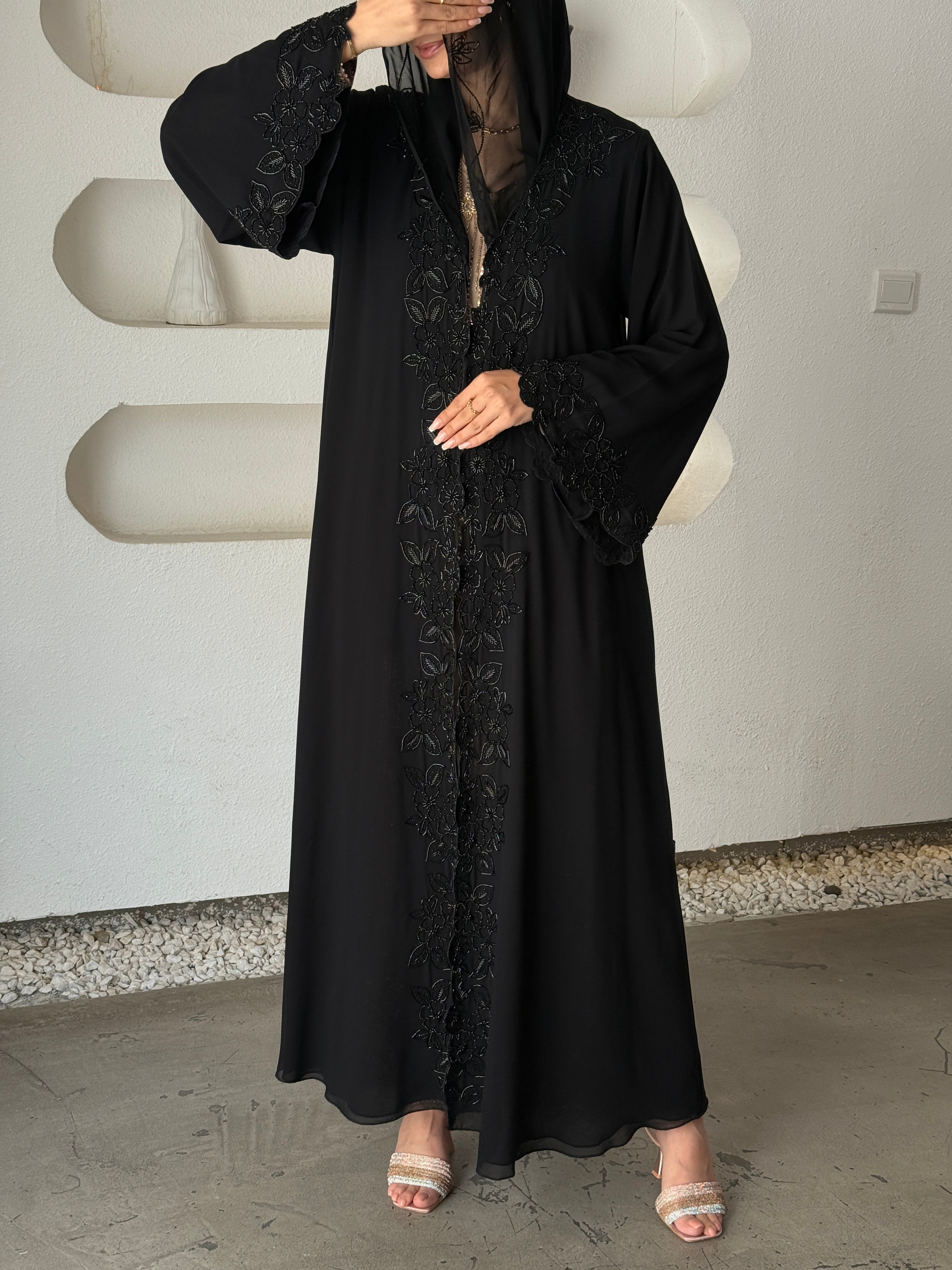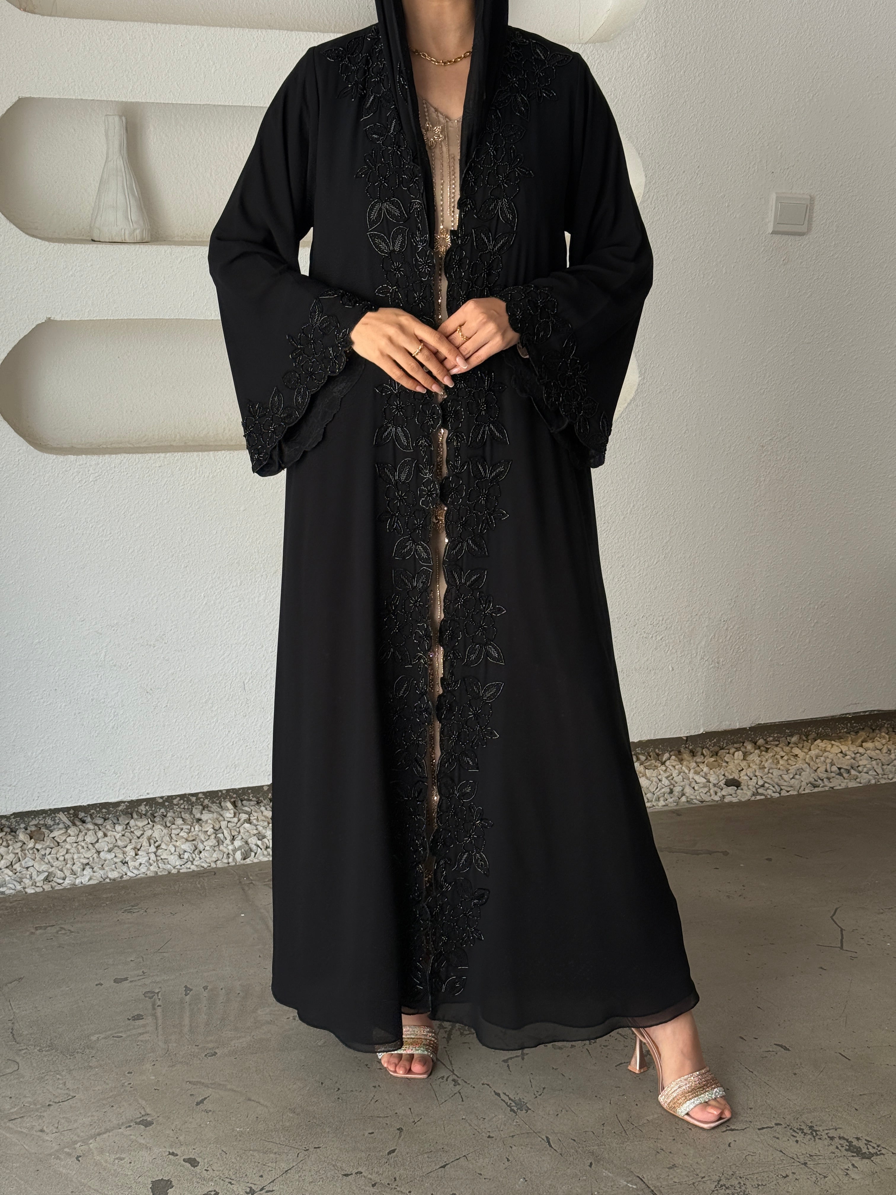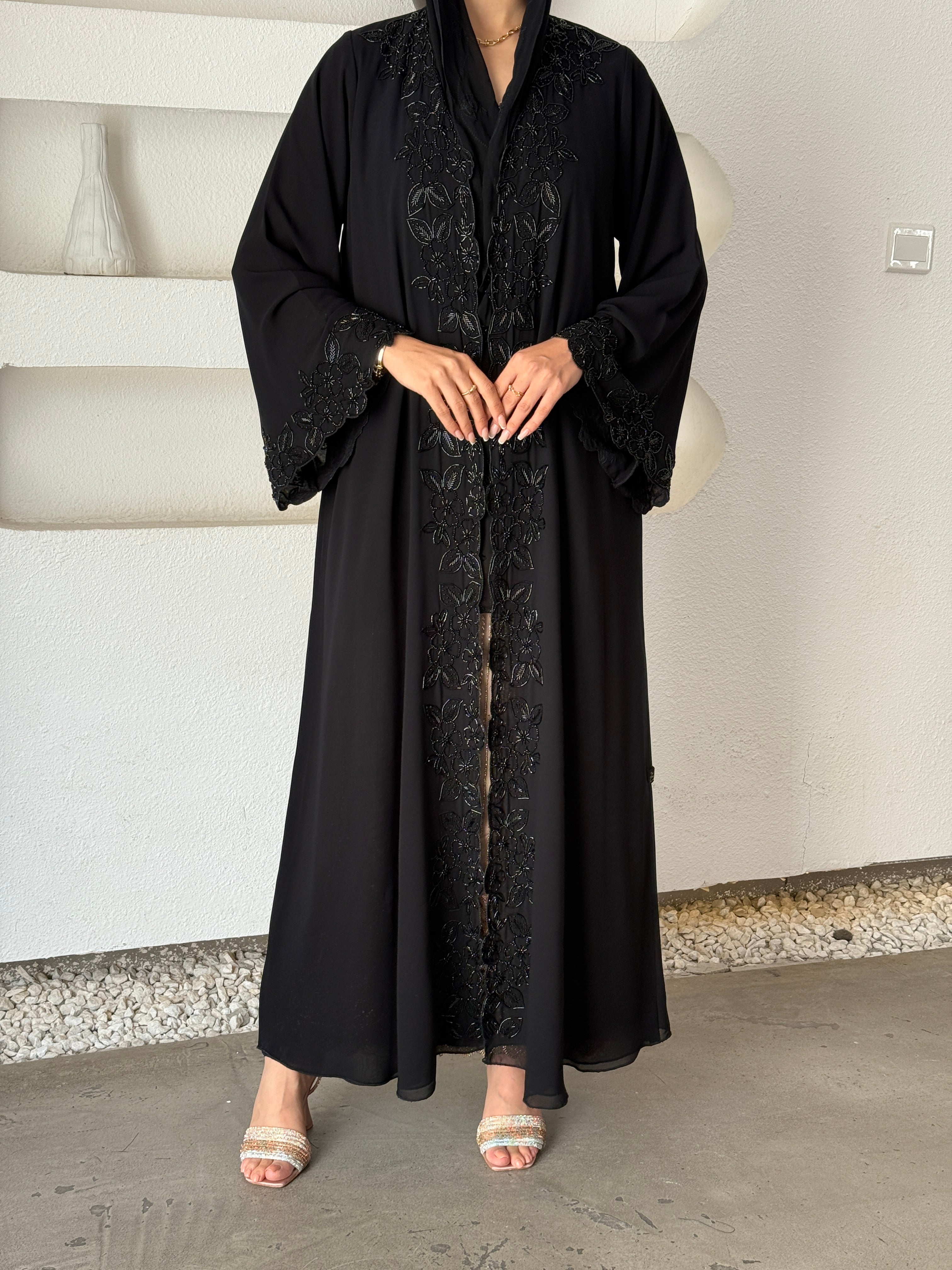 GOLBARG Black With Silver Handwork Abaya - Contessa Collection