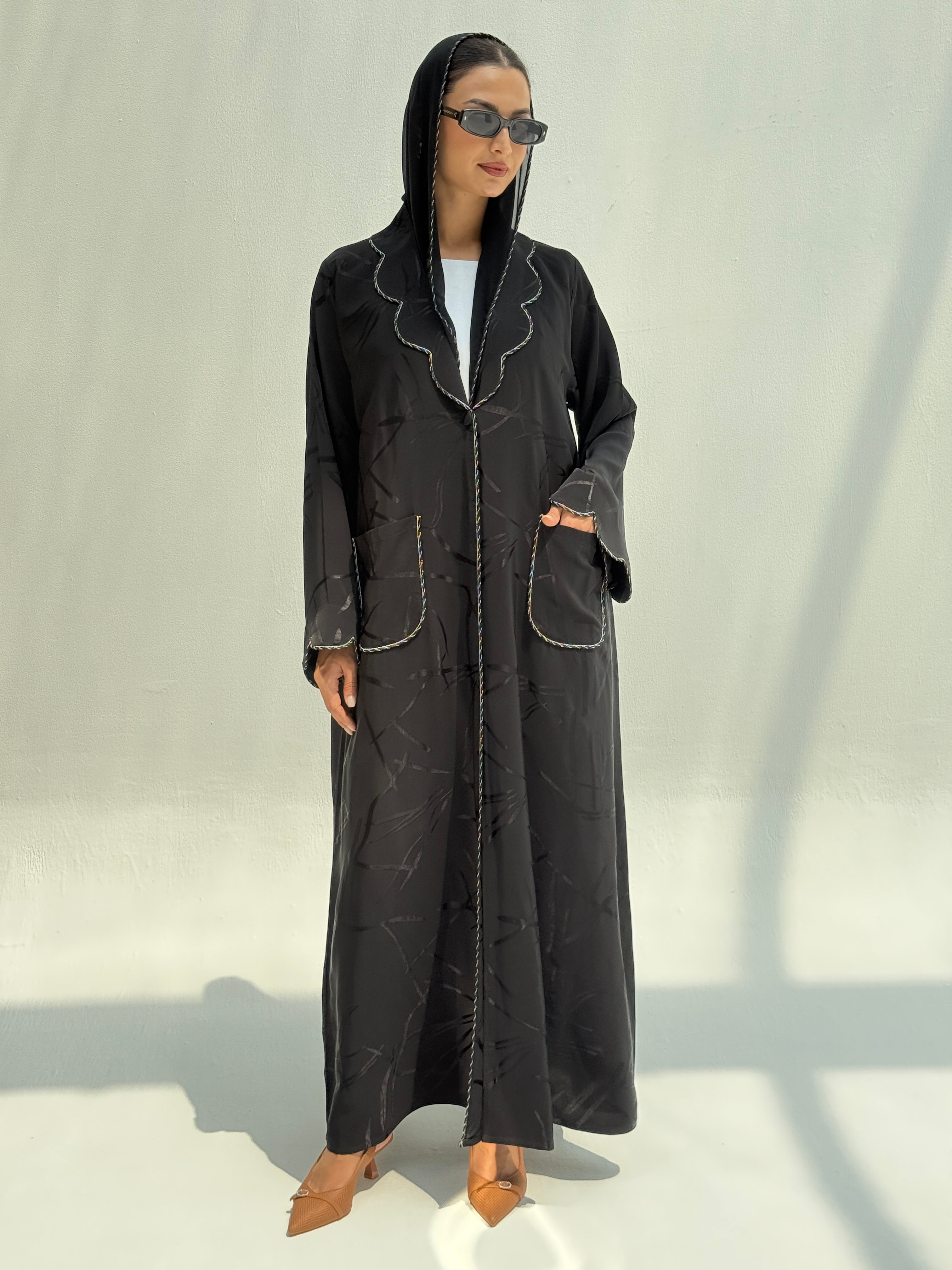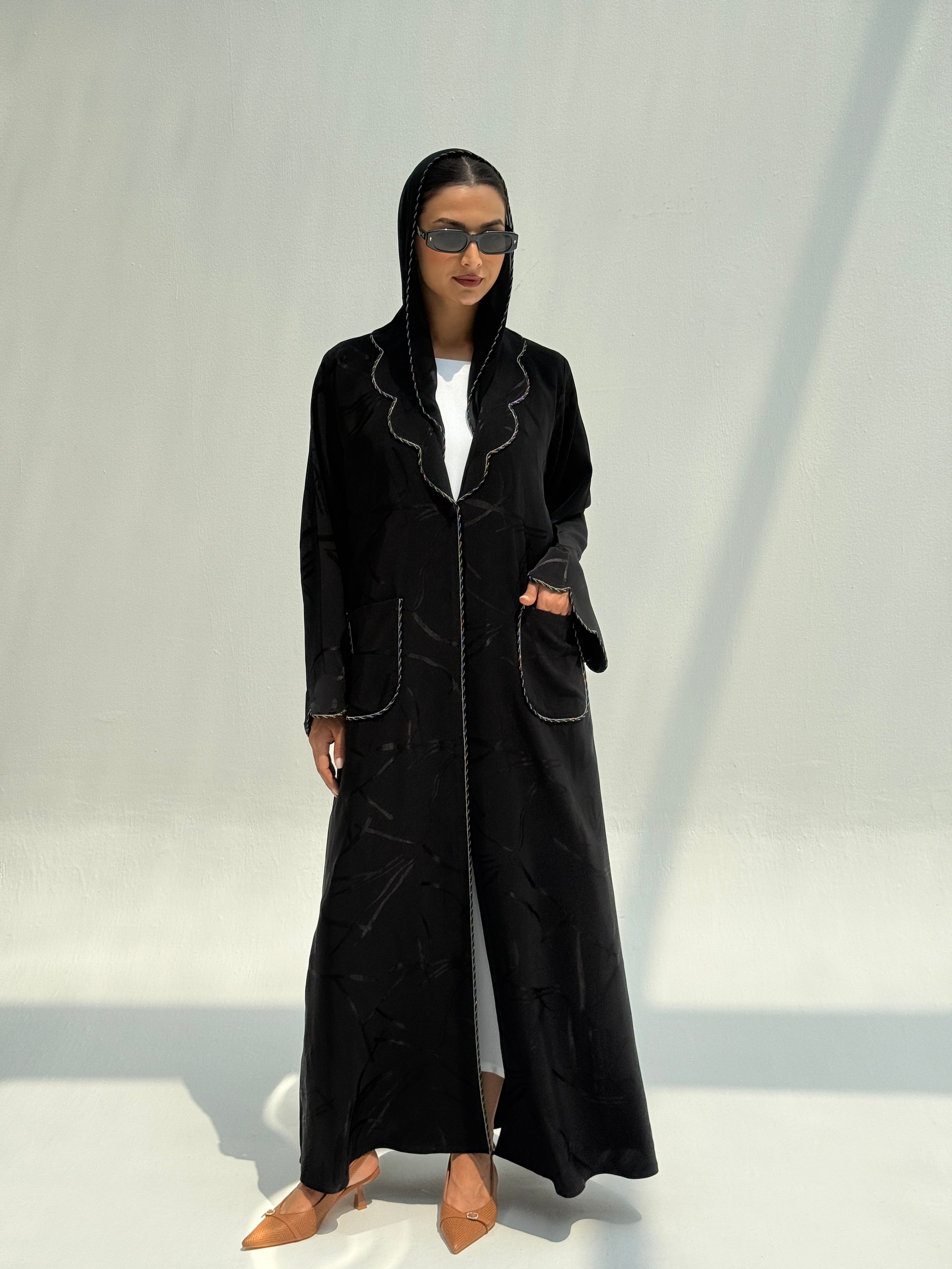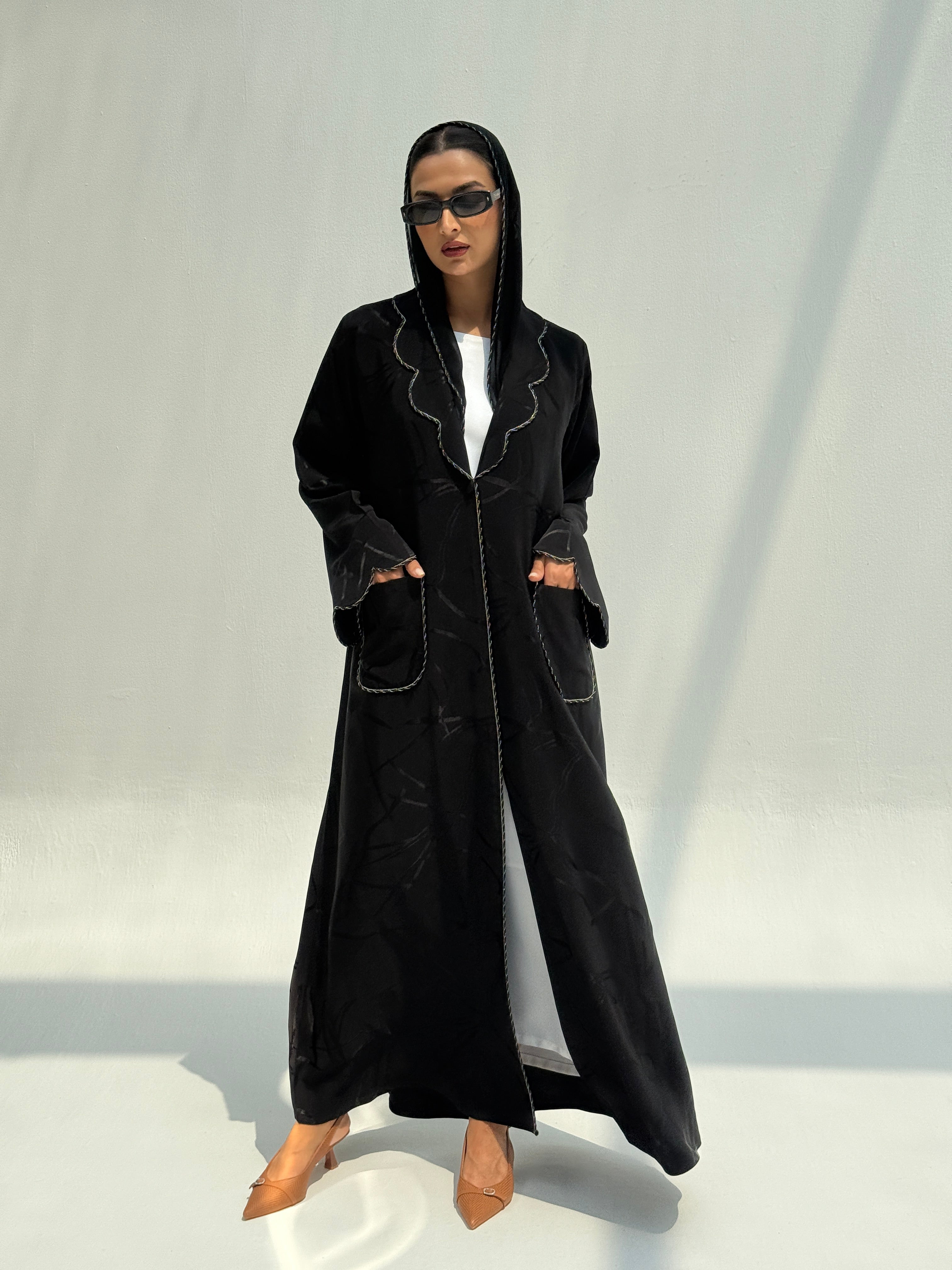 عباية سوداء أنيقة مصنوعة من قماش جاكار تركي فاخر،