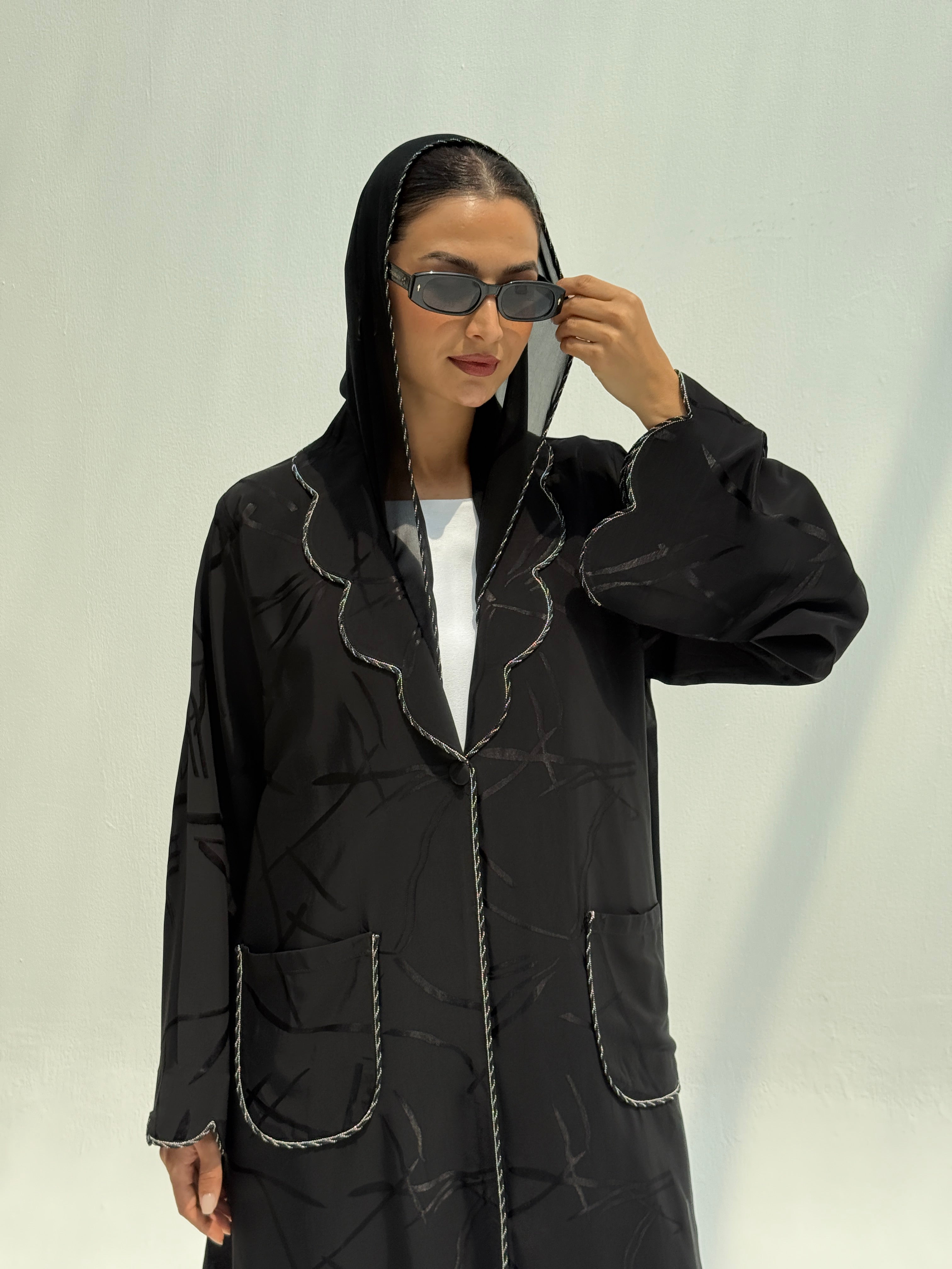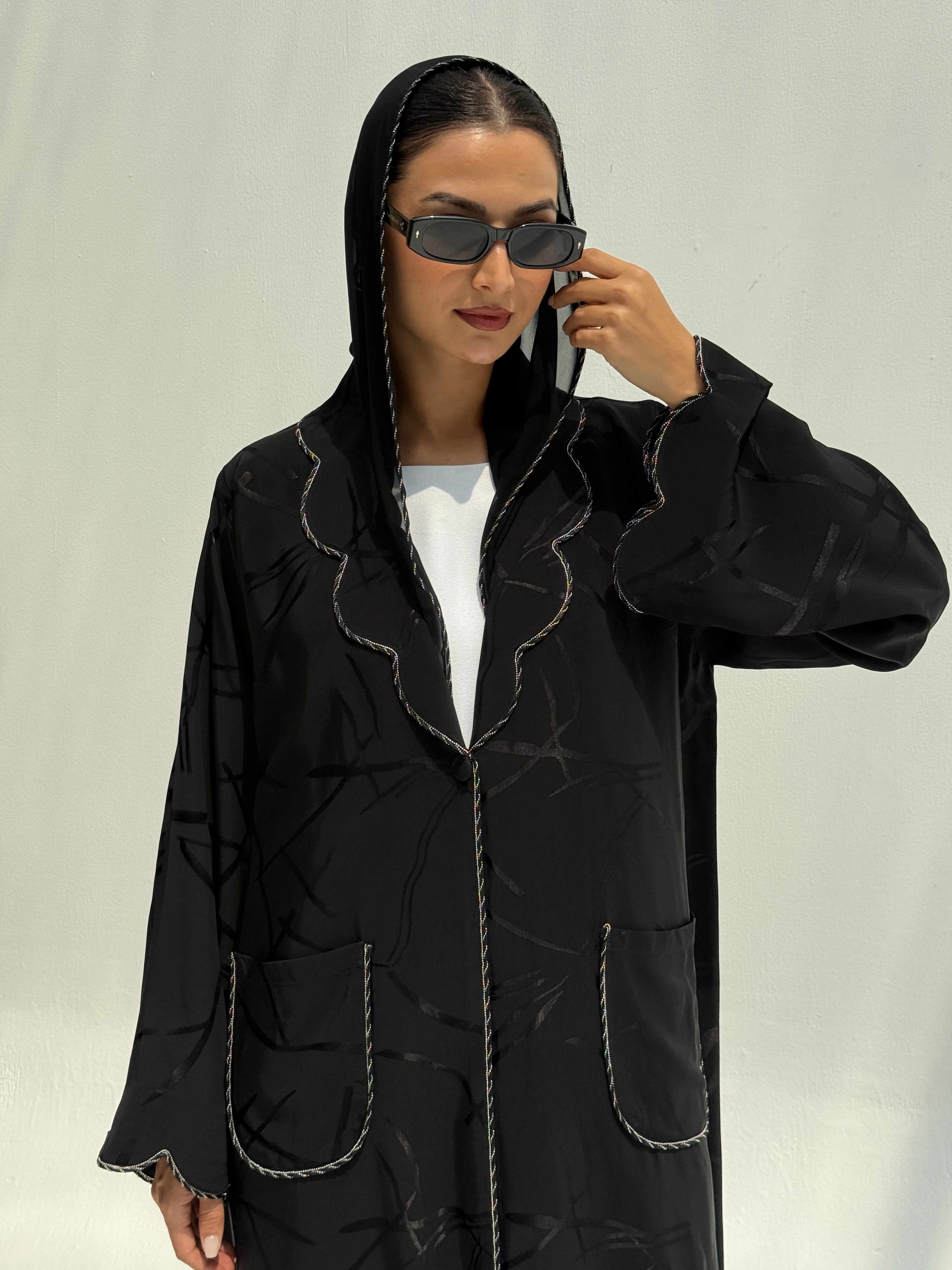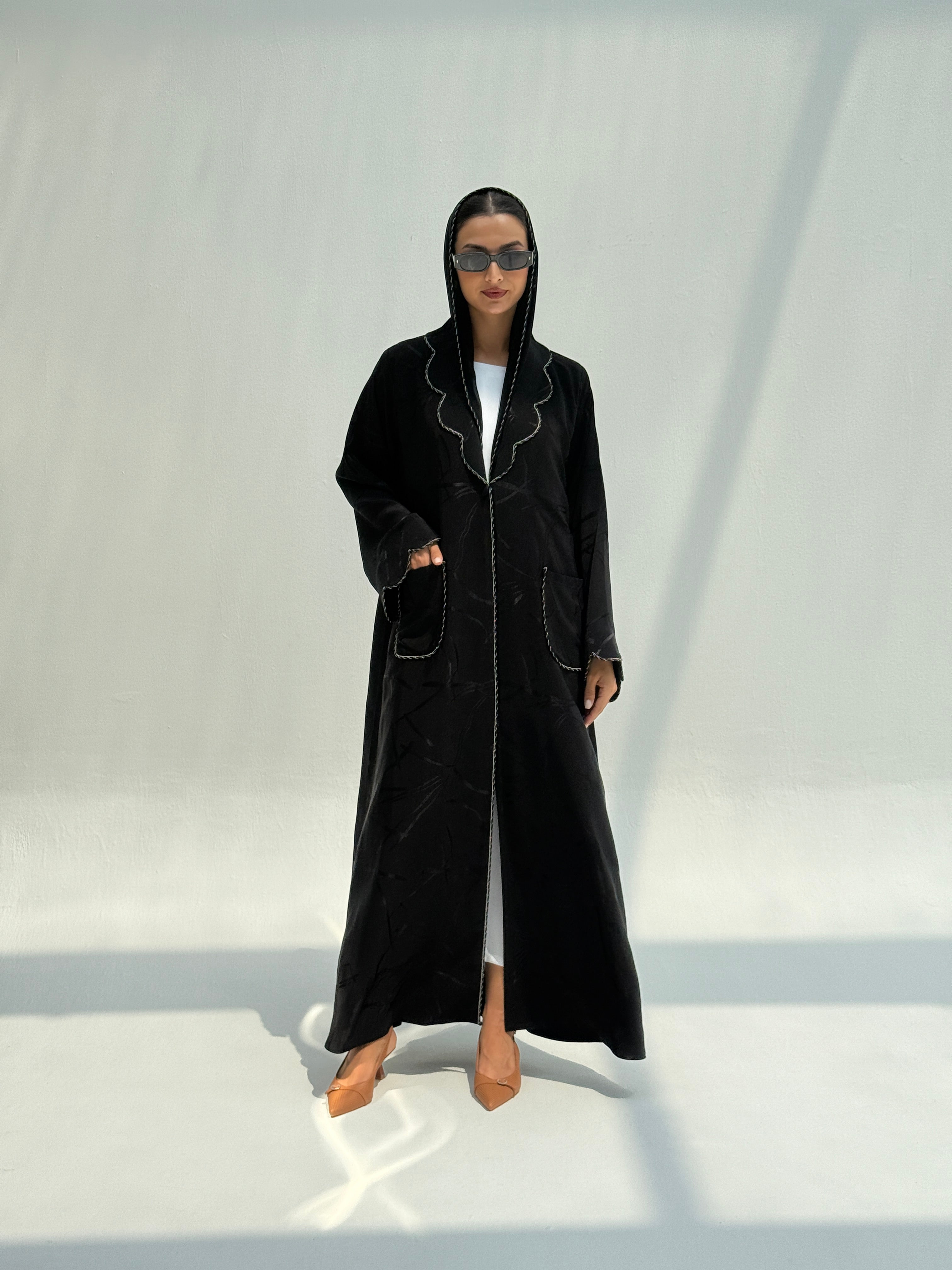 عباية سوداء أنيقة مصنوعة من قماش جاكار تركي فاخر،