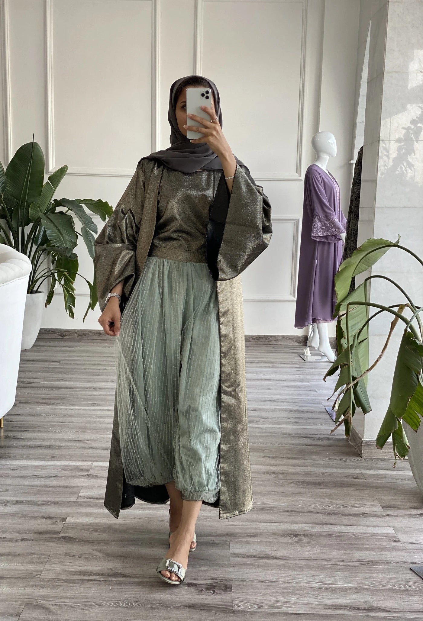 🔺 طقم عباية كامل يشمل البلوزة وبنطلون السندباد والشيلة