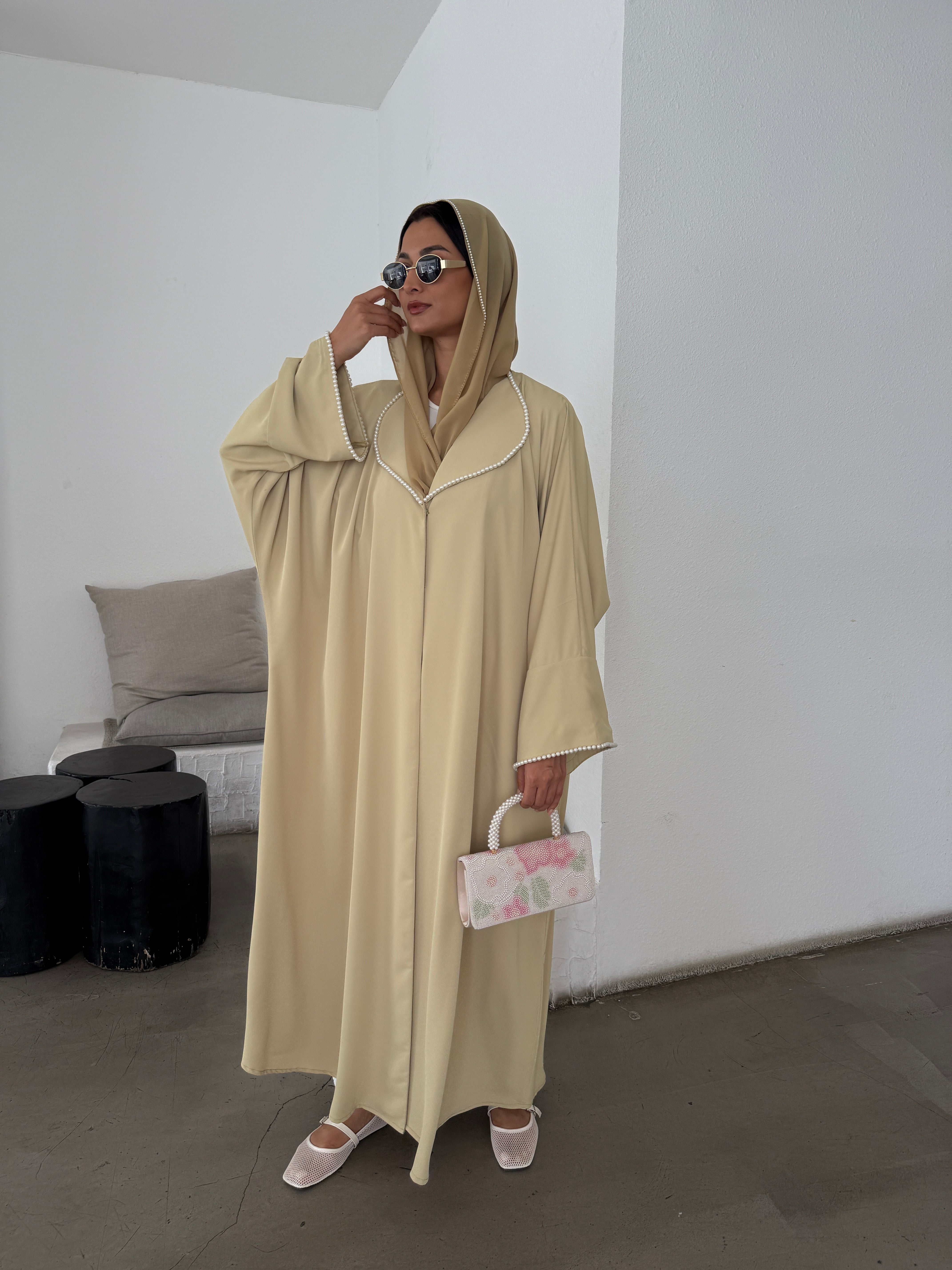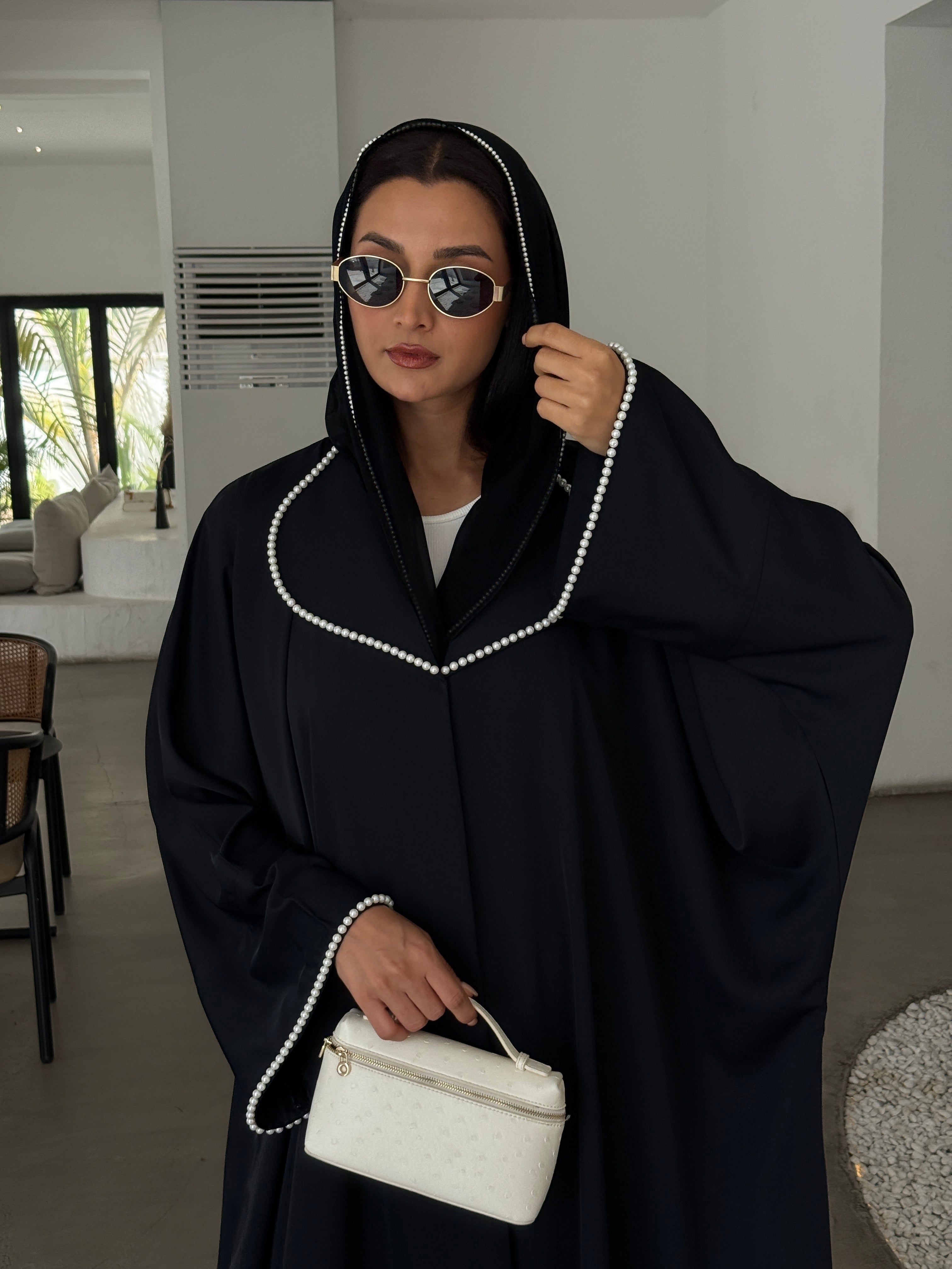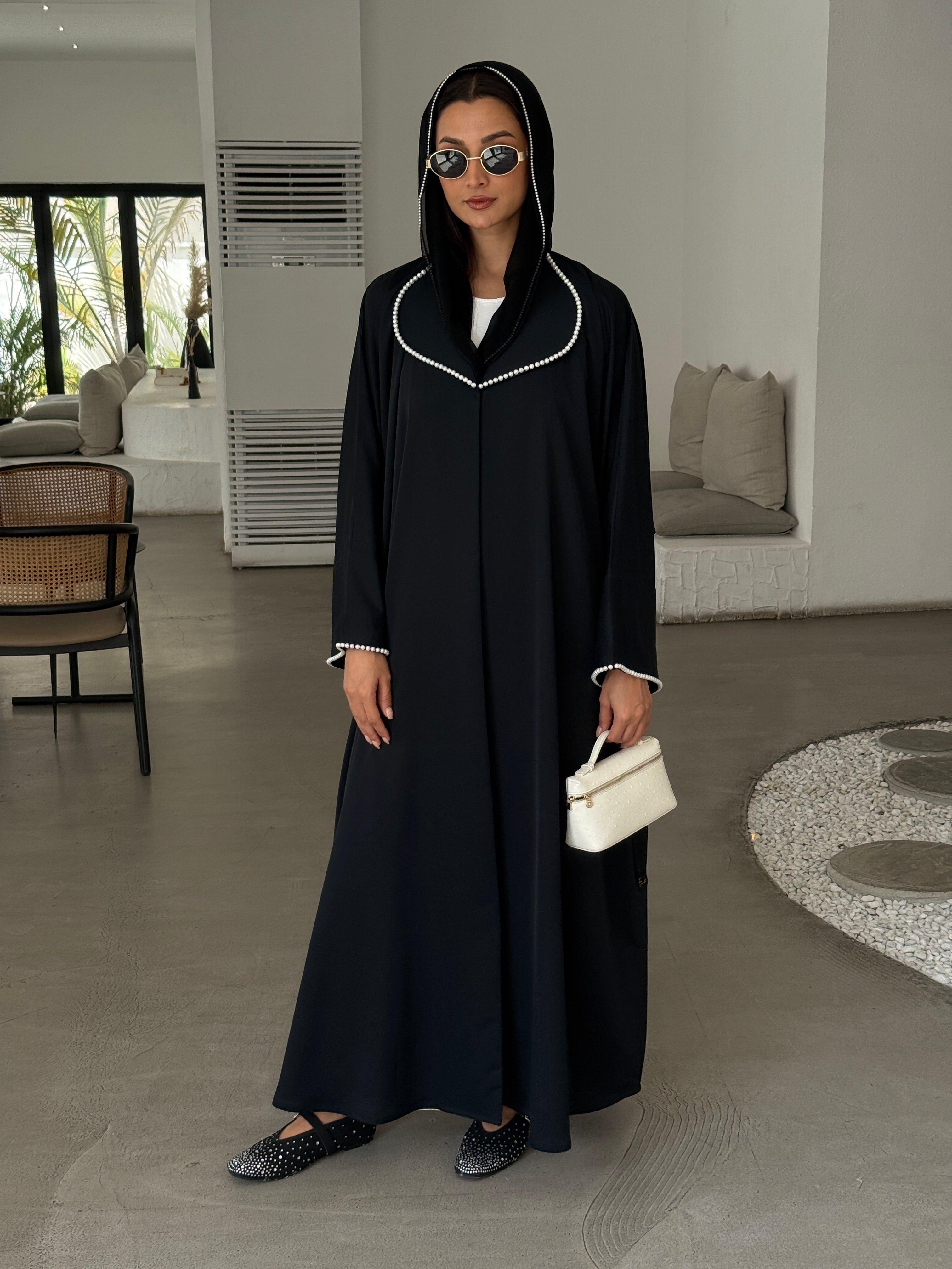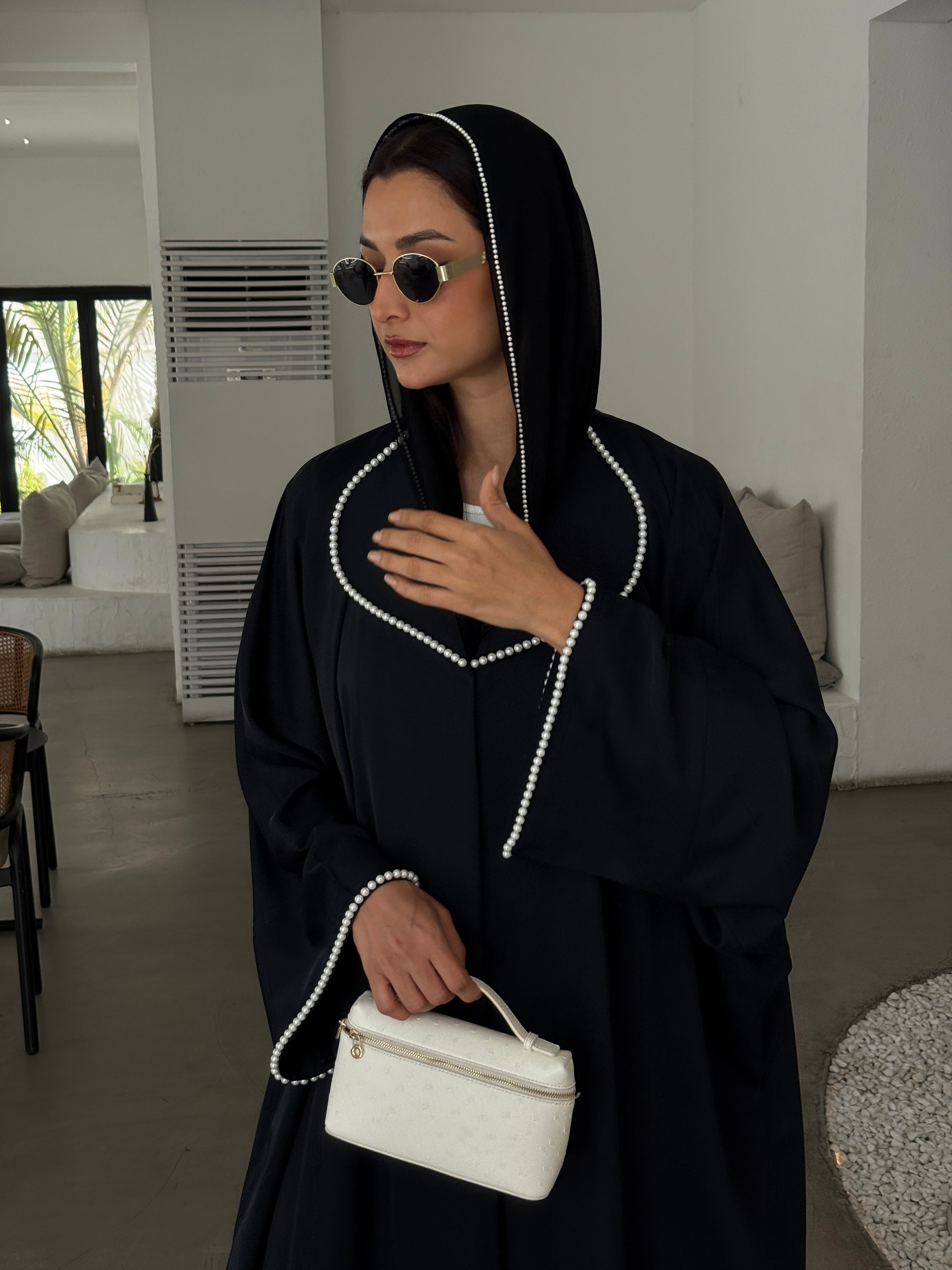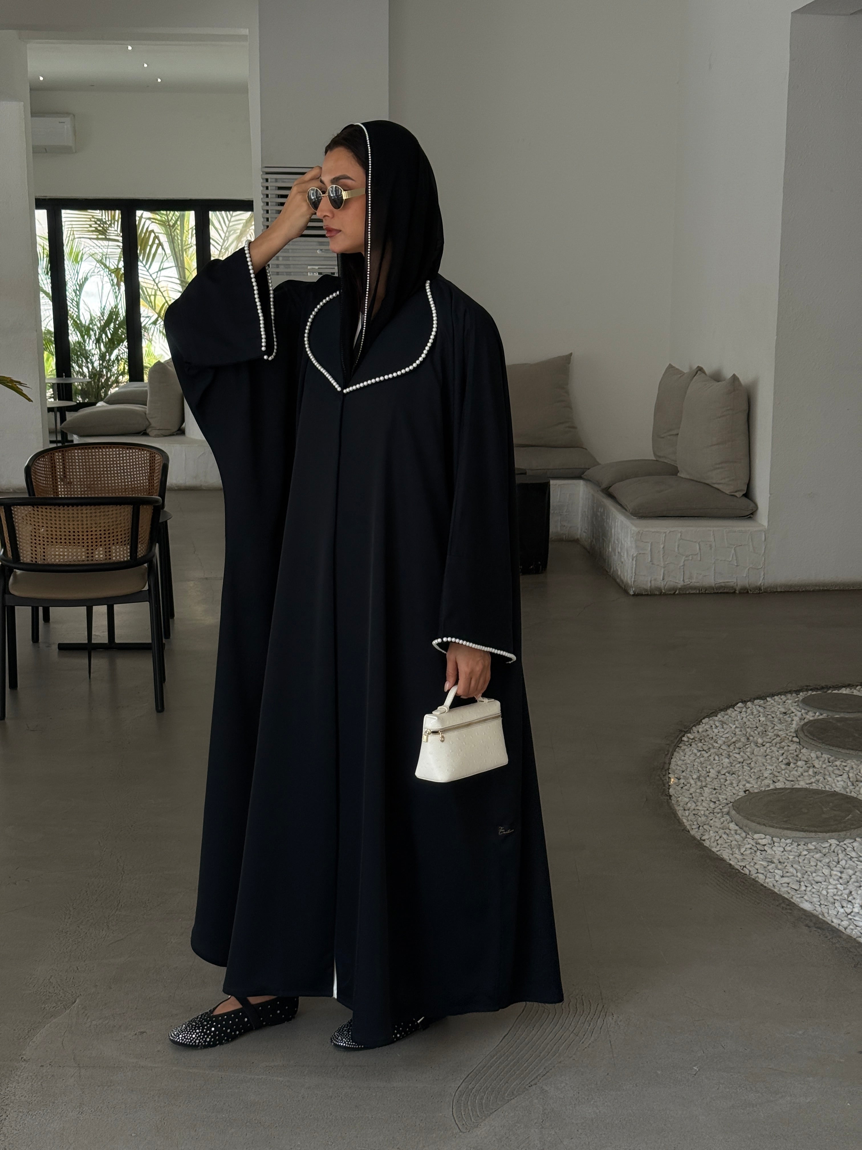 صُنعت هذه العباءة من قماش كريب كول الفاخر، وتتميز بخفة وزنها وقدرتها على التنفس، ما يجعلها مثالية للفصول الدافئة. كل قطعة مزينة يدويًا بتفاصيل لؤلؤية رقيقة، تعكس أناقةً وحرفيةً راقية.