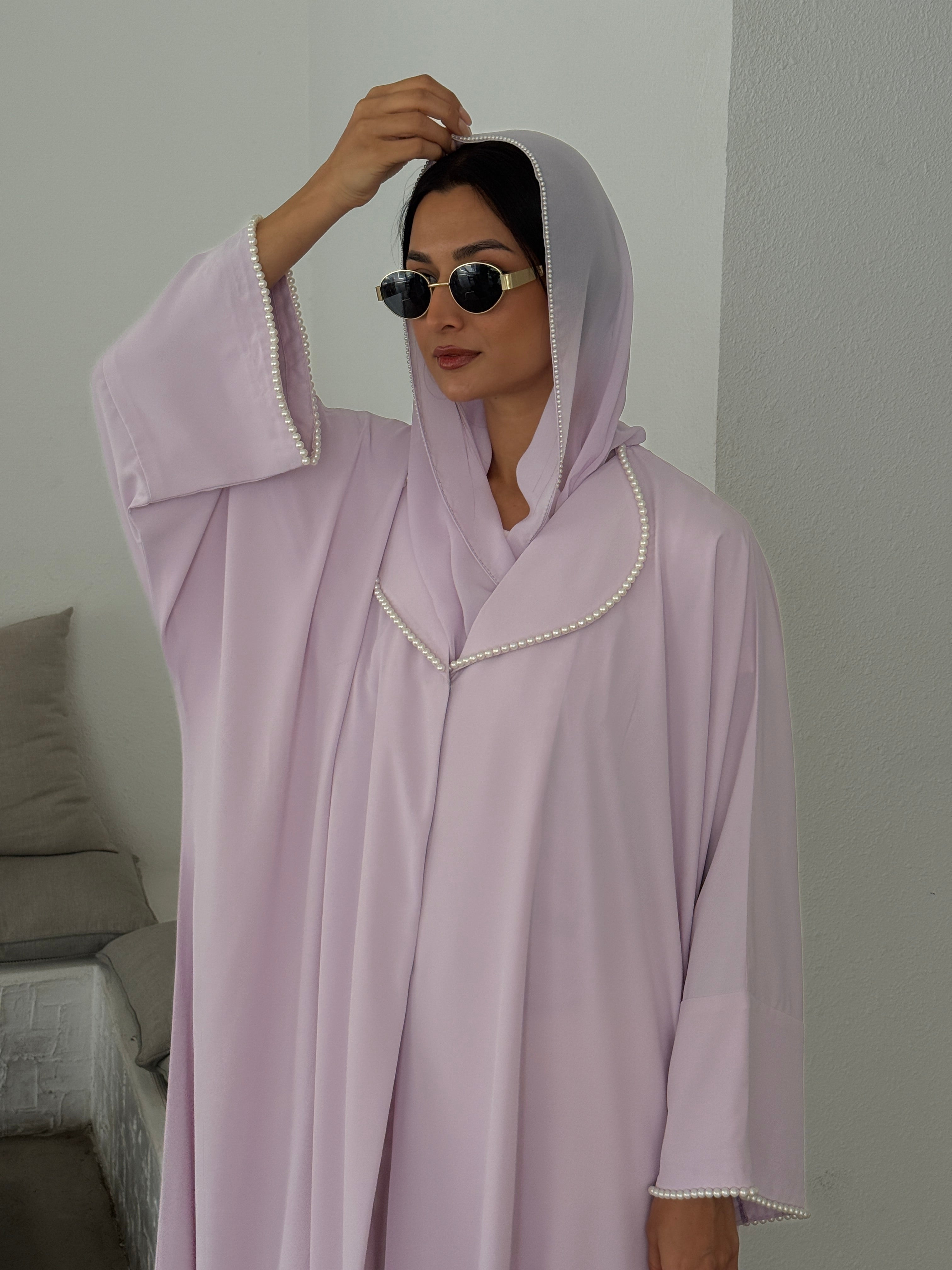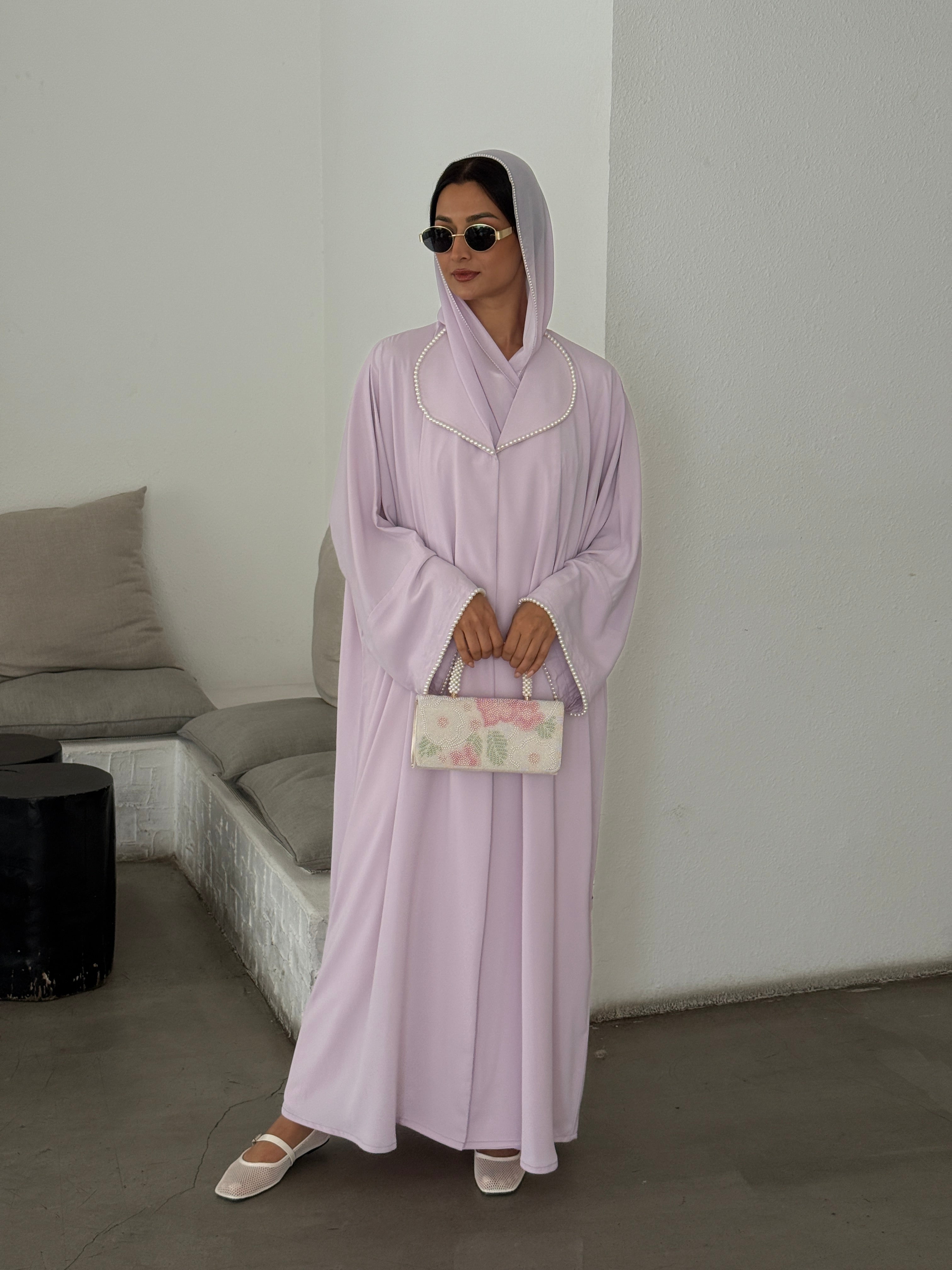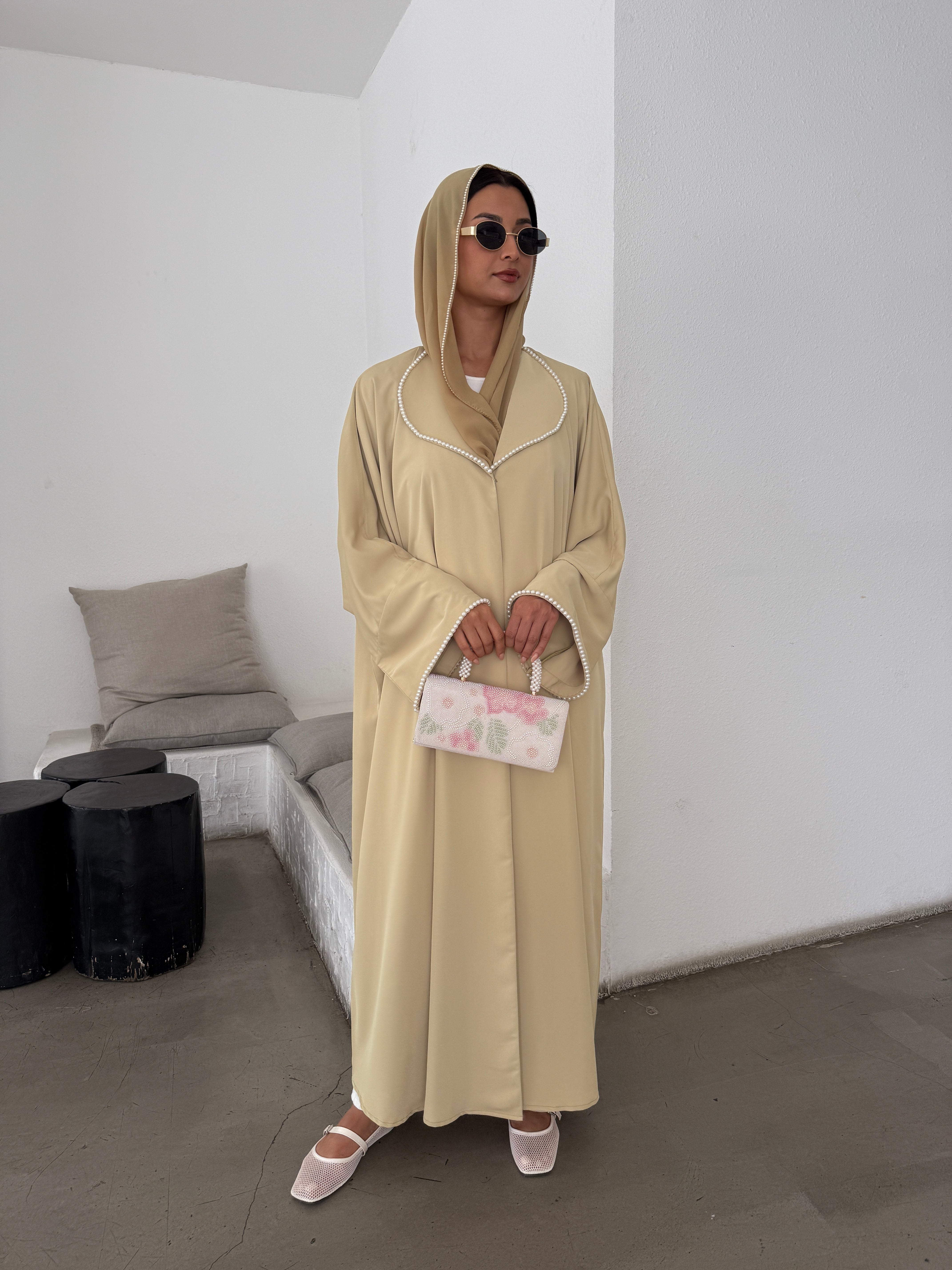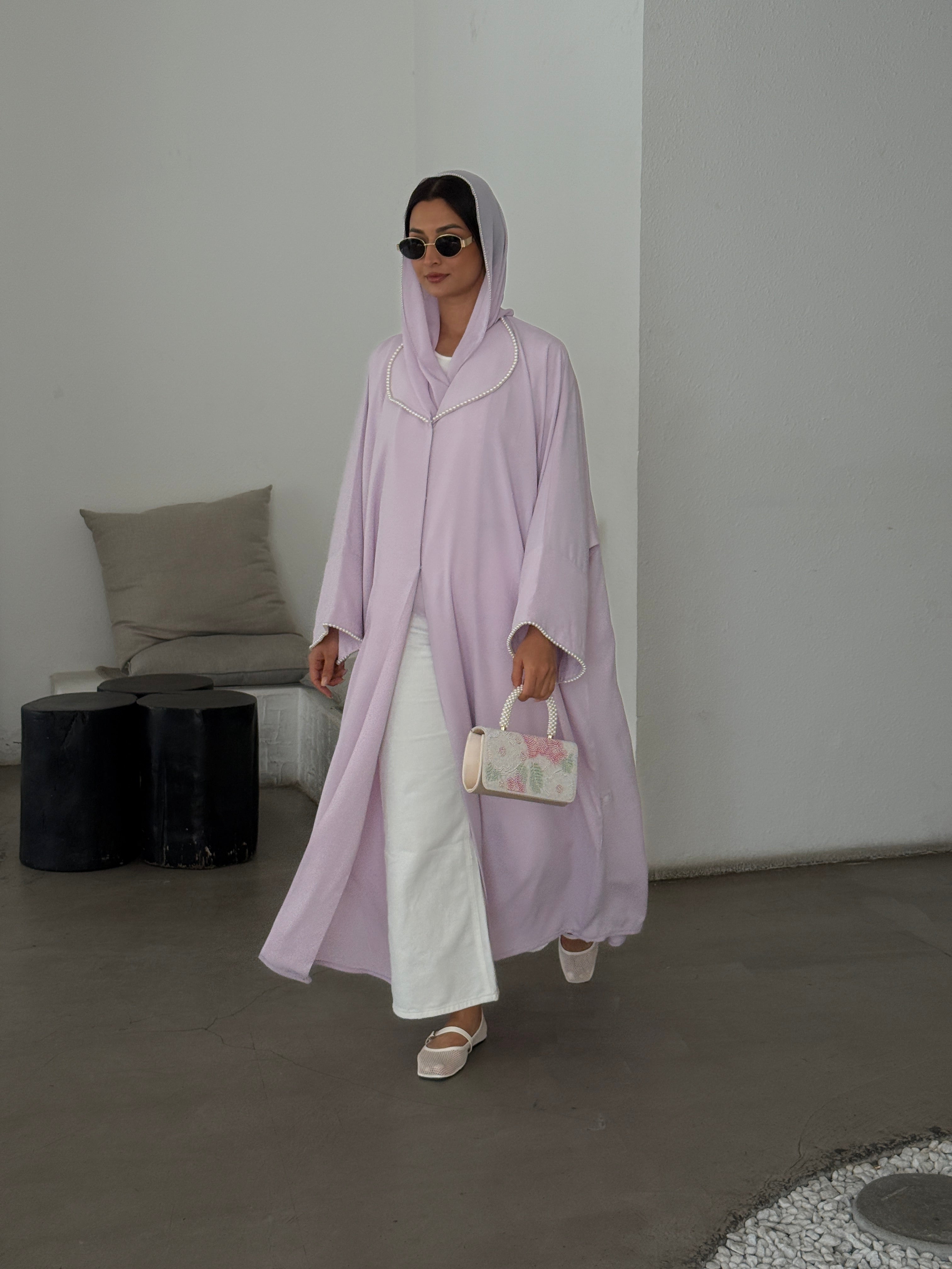 صُنعت هذه العباءة من قماش كريب كول الفاخر، وتتميز بخفة وزنها وقدرتها على التنفس، ما يجعلها مثالية للفصول الدافئة. كل قطعة مزينة يدويًا بتفاصيل لؤلؤية رقيقة، تعكس أناقةً وحرفيةً راقية.