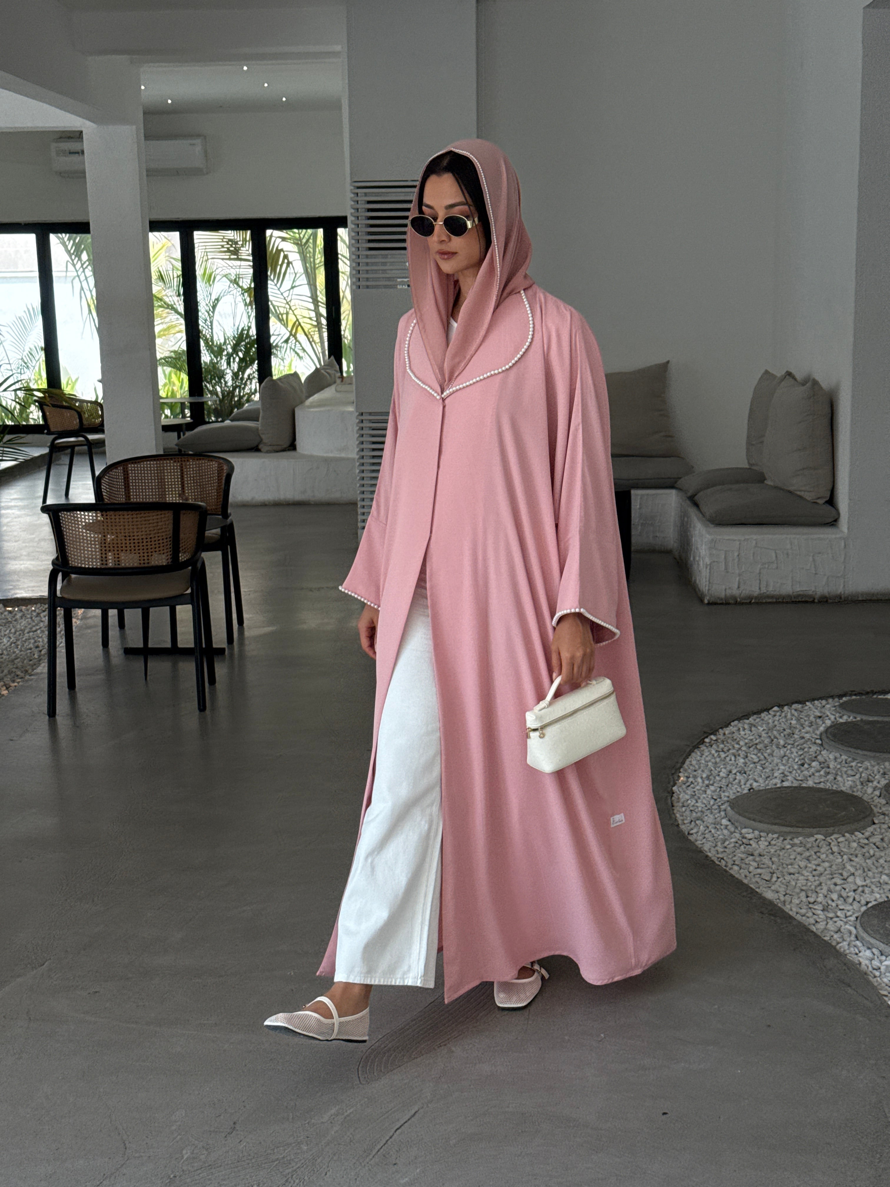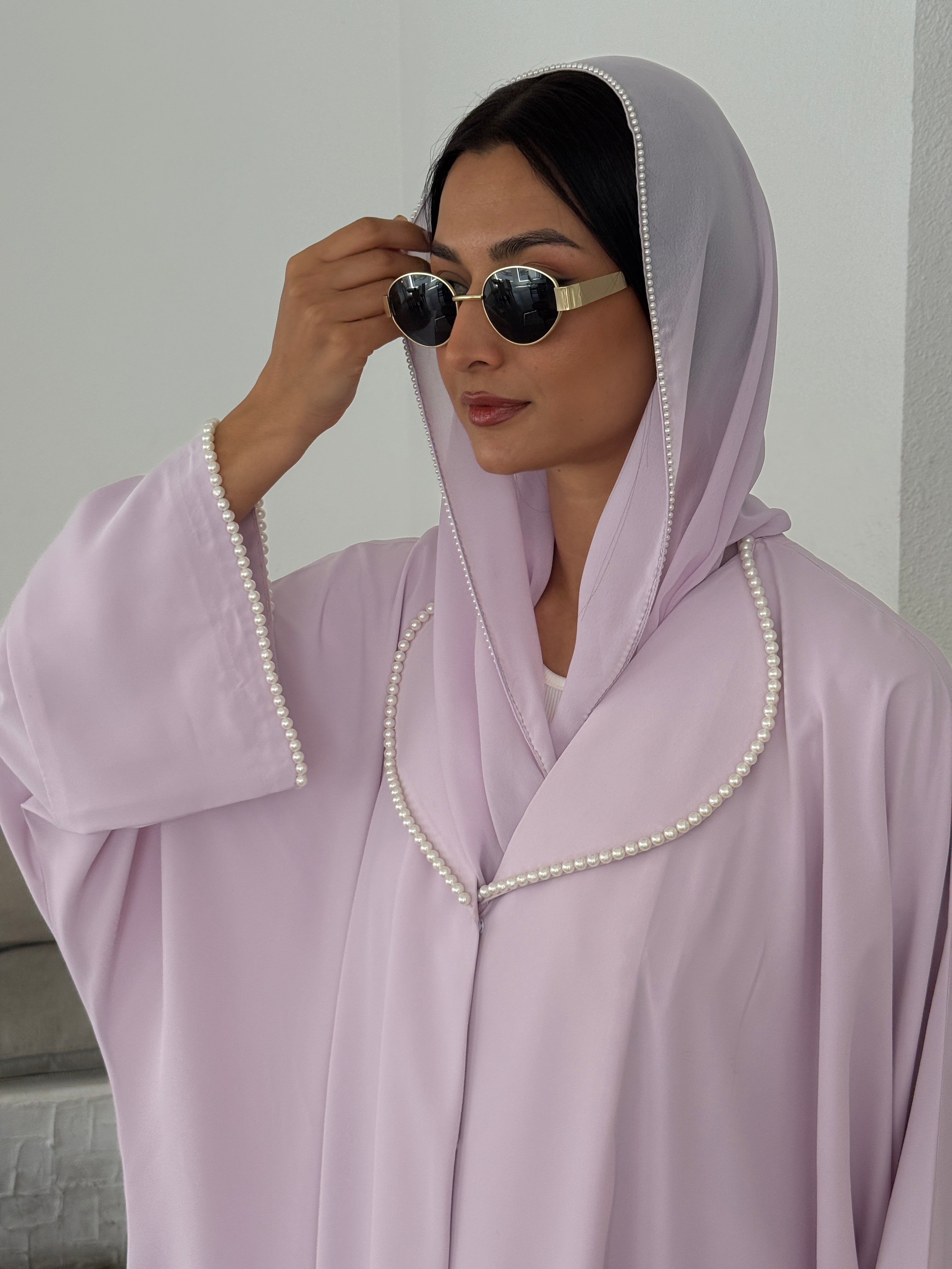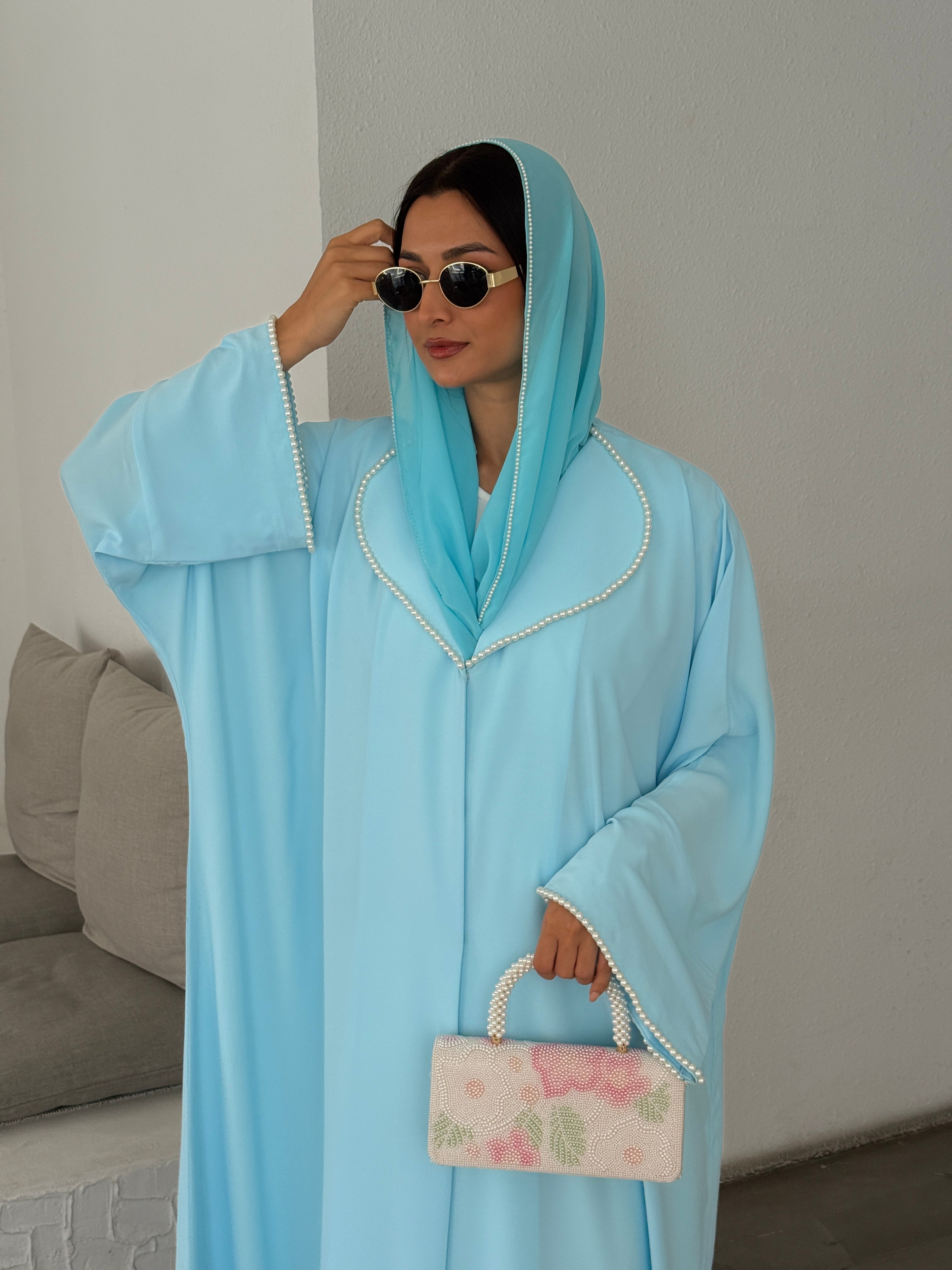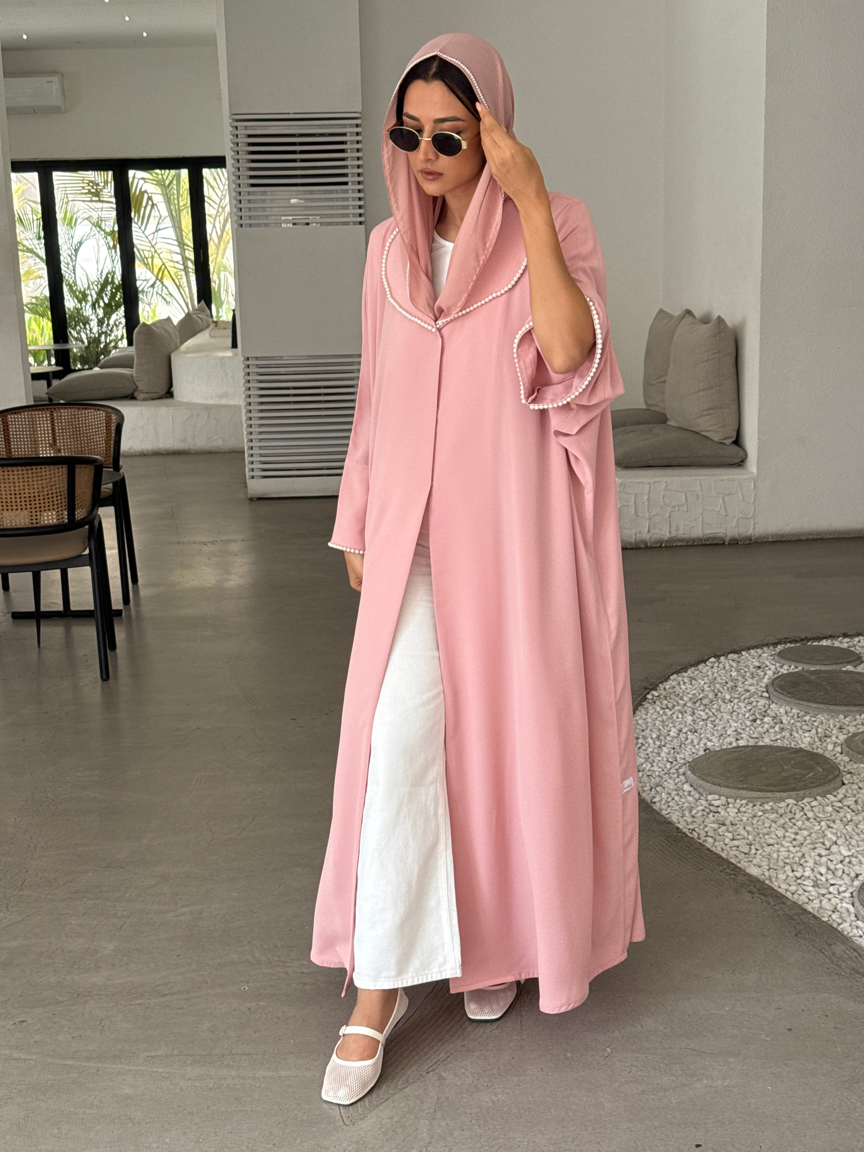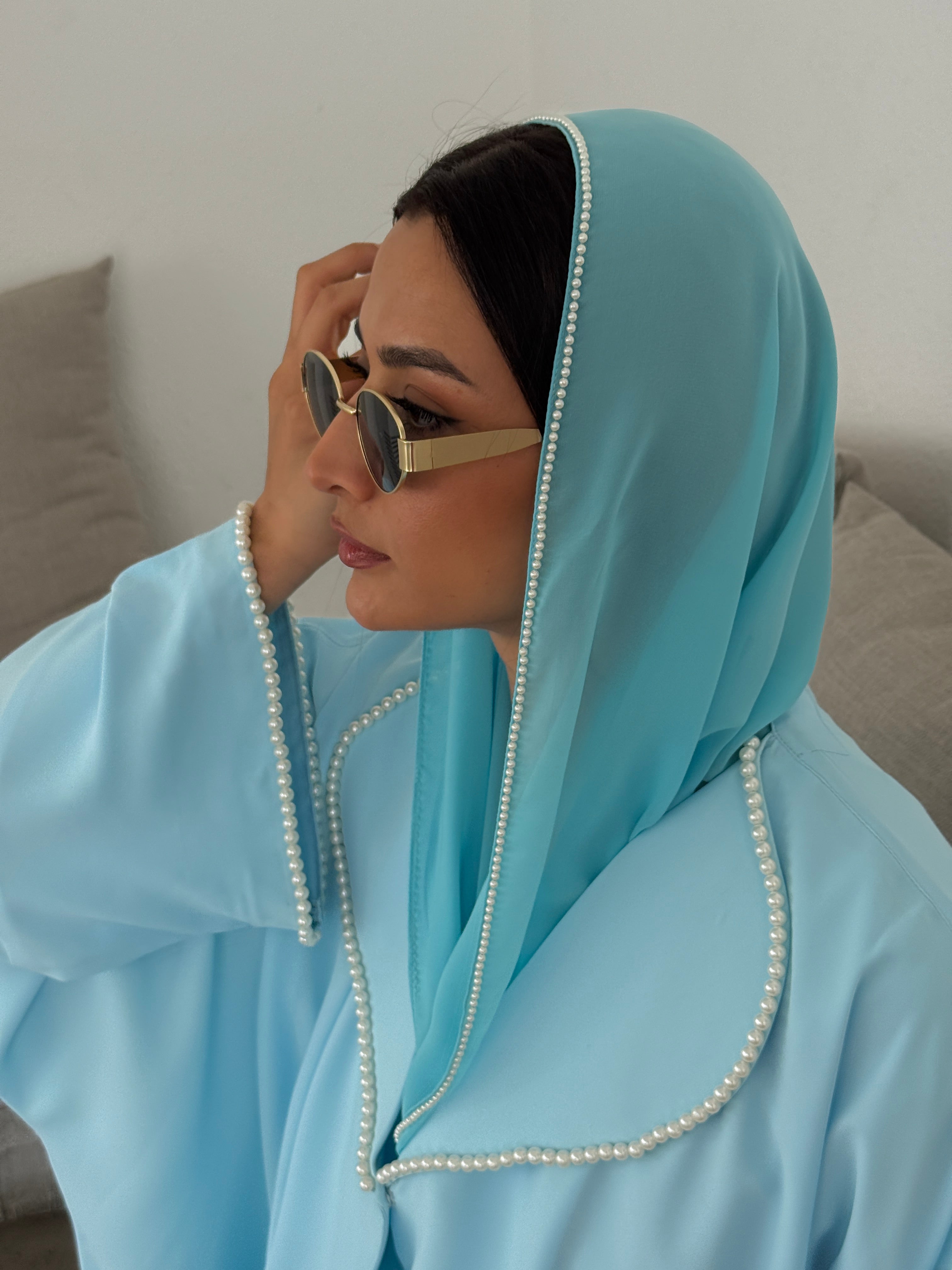 صُنعت هذه العباءة من قماش كريب كول الفاخر، وتتميز بخفة وزنها وقدرتها على التنفس، ما يجعلها مثالية للفصول الدافئة. كل قطعة مزينة يدويًا بتفاصيل لؤلؤية رقيقة، تعكس أناقةً وحرفيةً راقية.