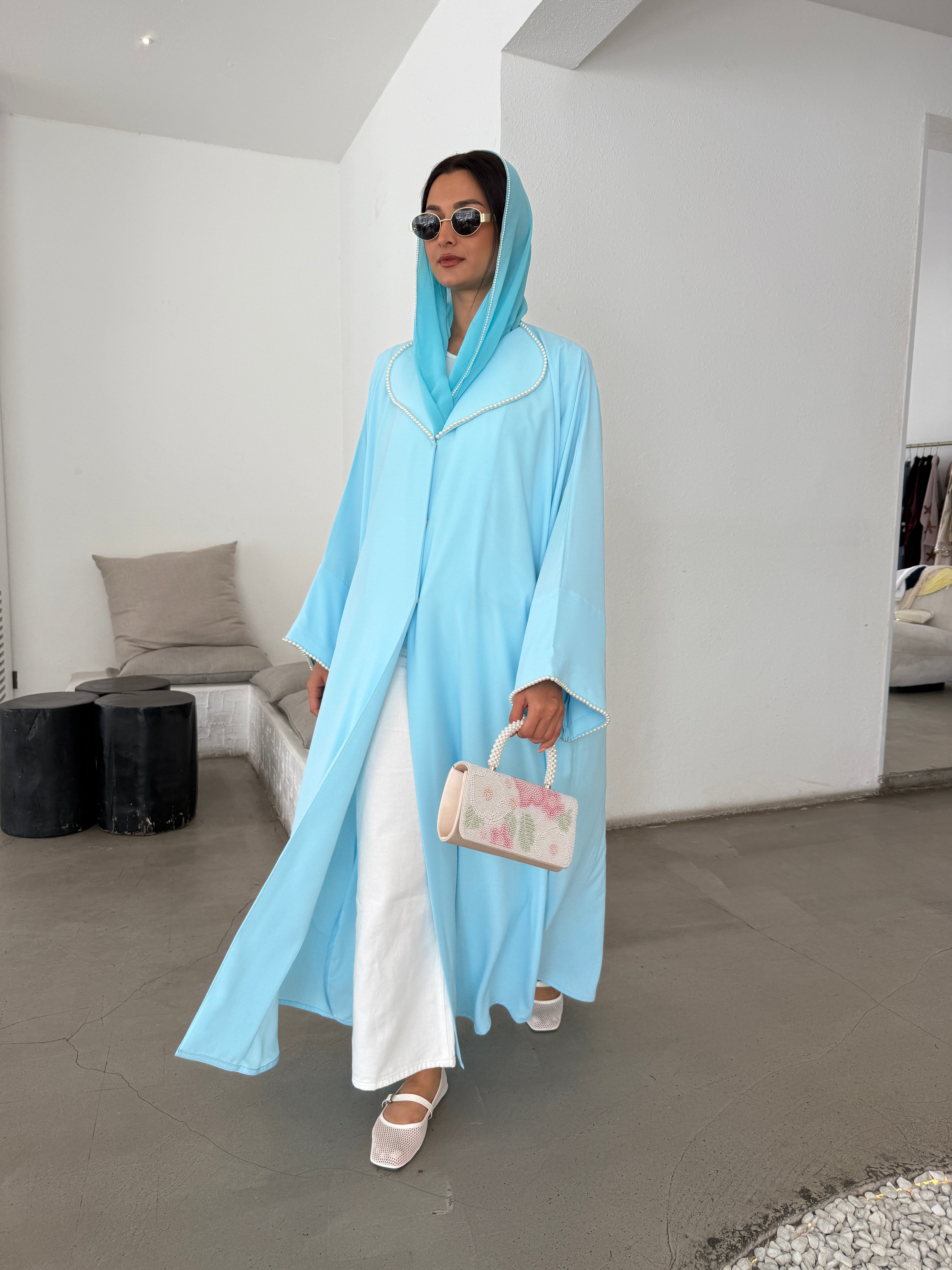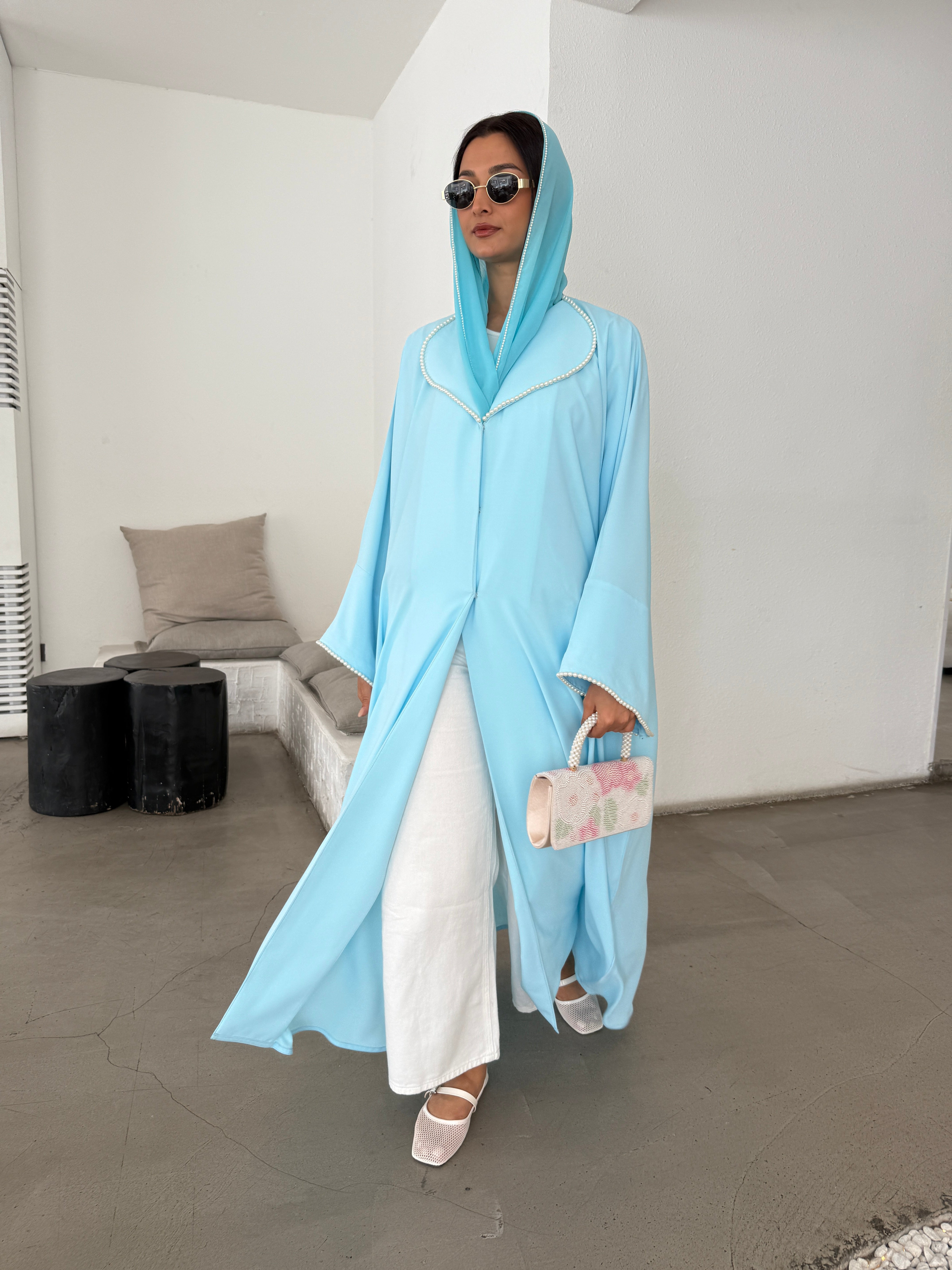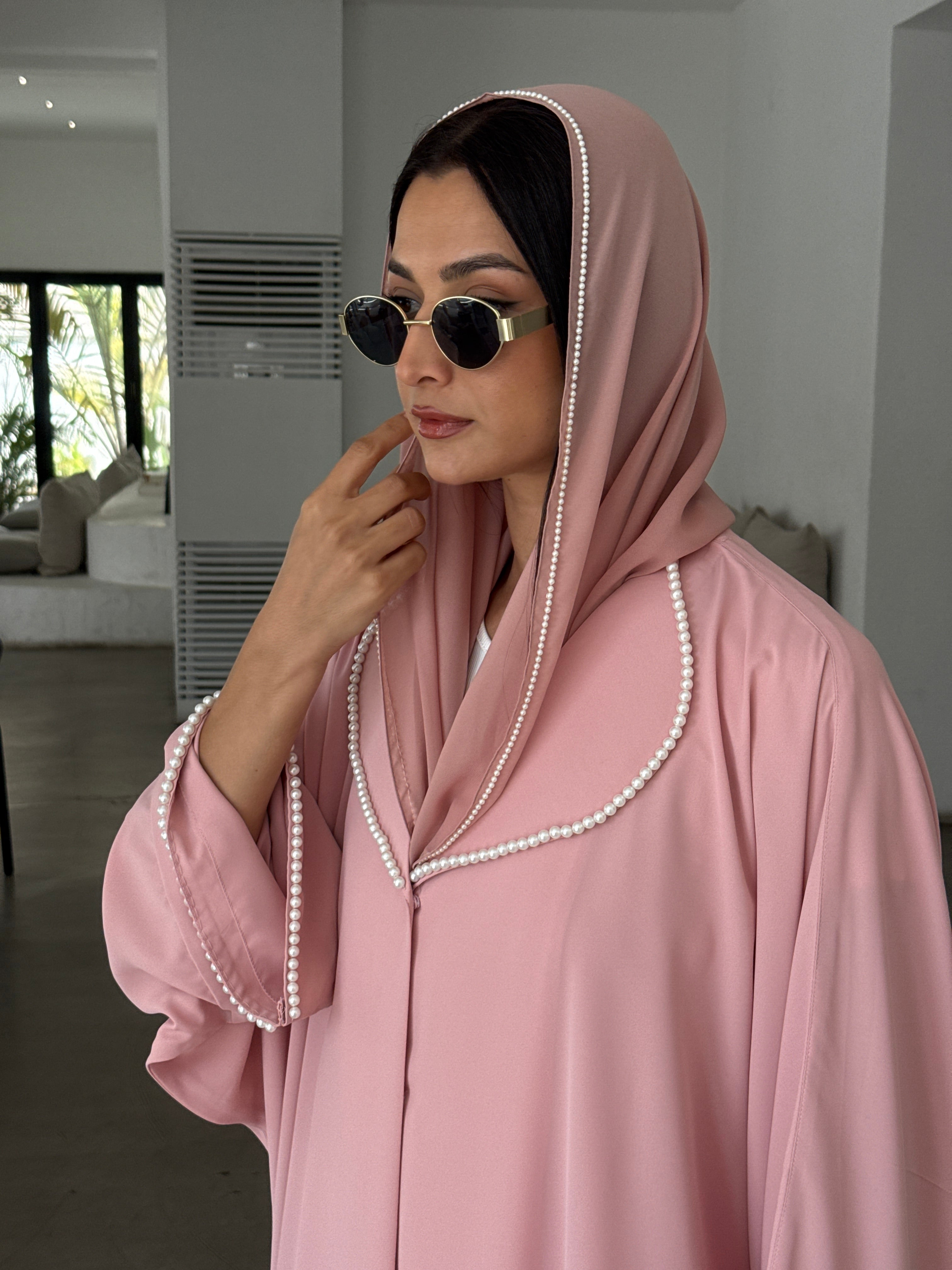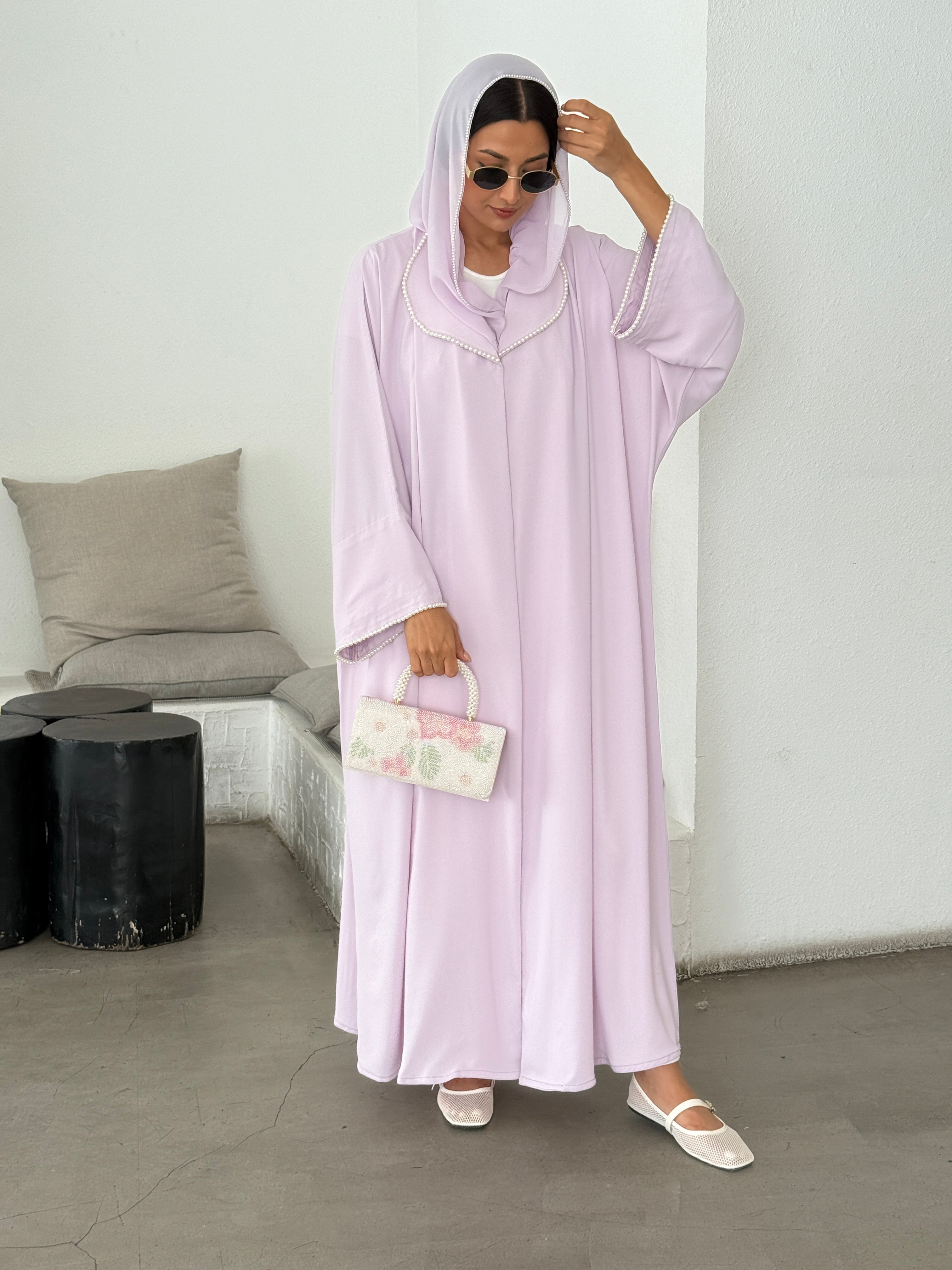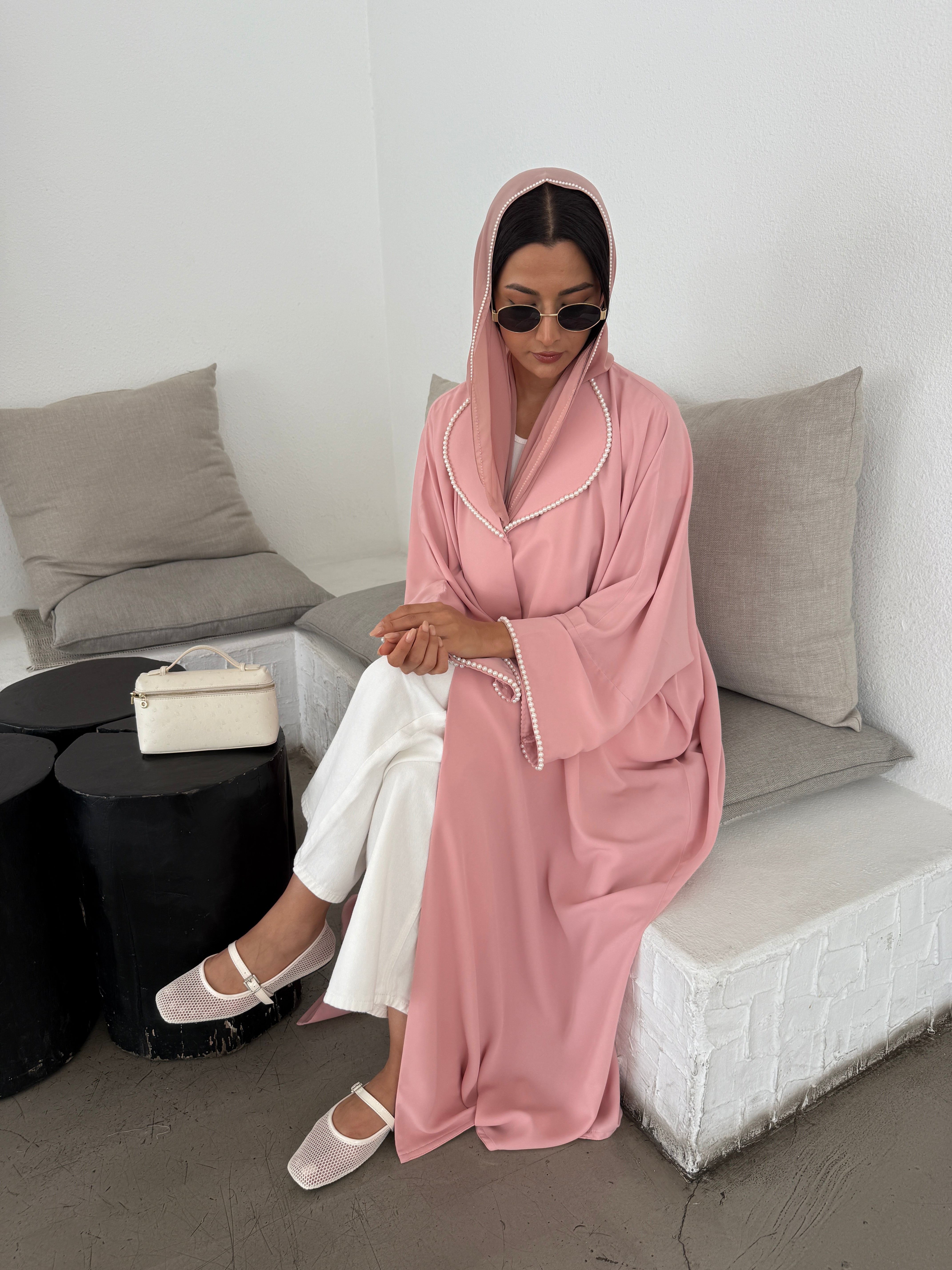 صُنعت هذه العباءة من قماش كريب كول الفاخر، وتتميز بخفة وزنها وقدرتها على التنفس، ما يجعلها مثالية للفصول الدافئة. كل قطعة مزينة يدويًا بتفاصيل لؤلؤية رقيقة، تعكس أناقةً وحرفيةً راقية.