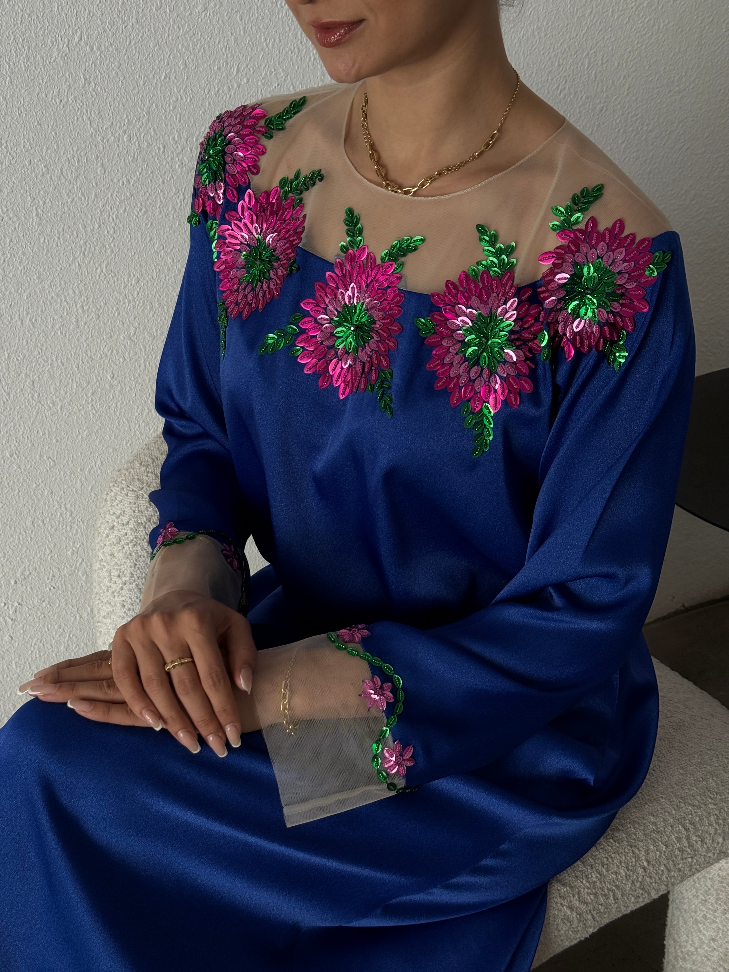 قماش كريب مع ترتر وخرز يدوي الصنع
