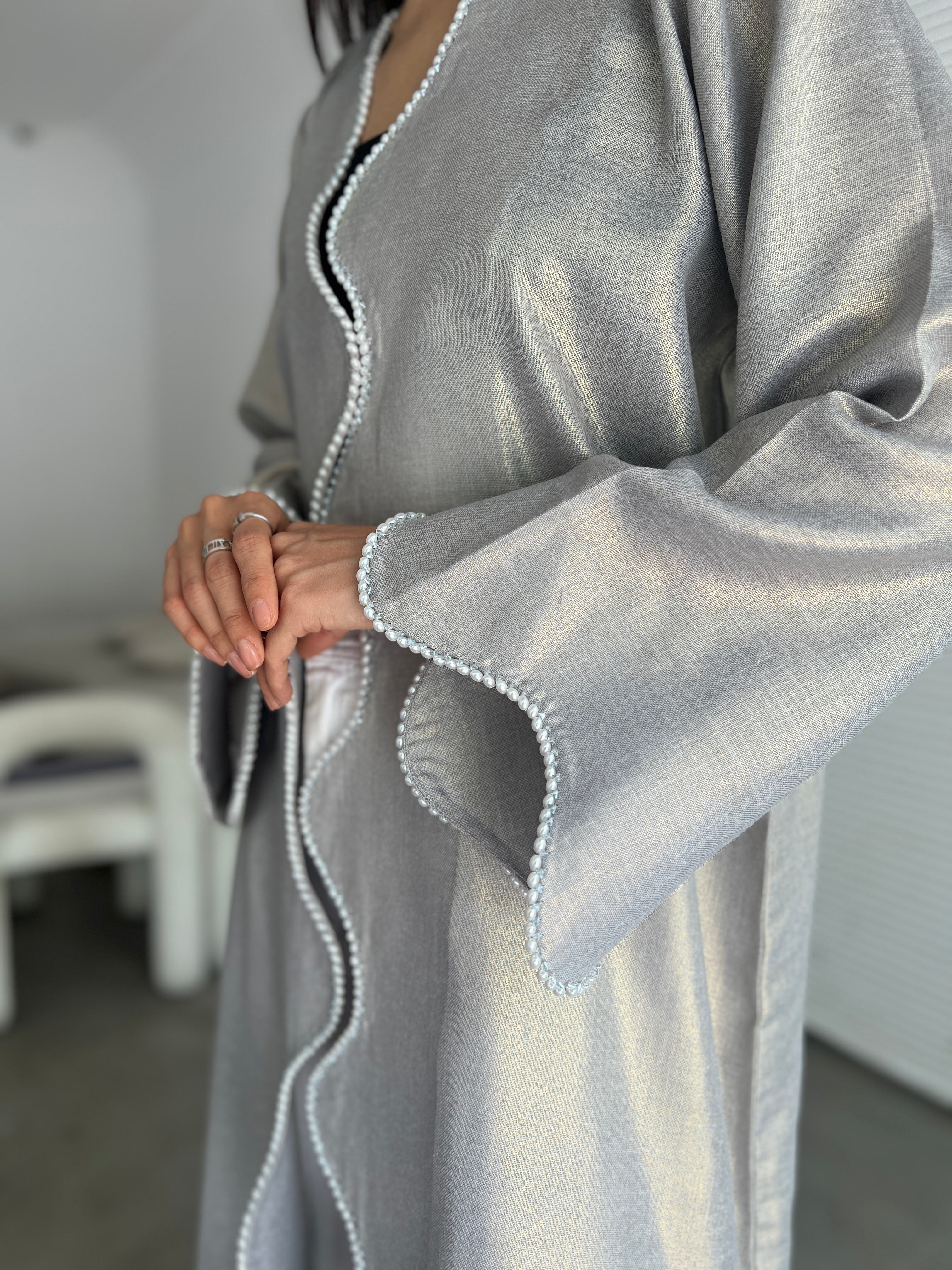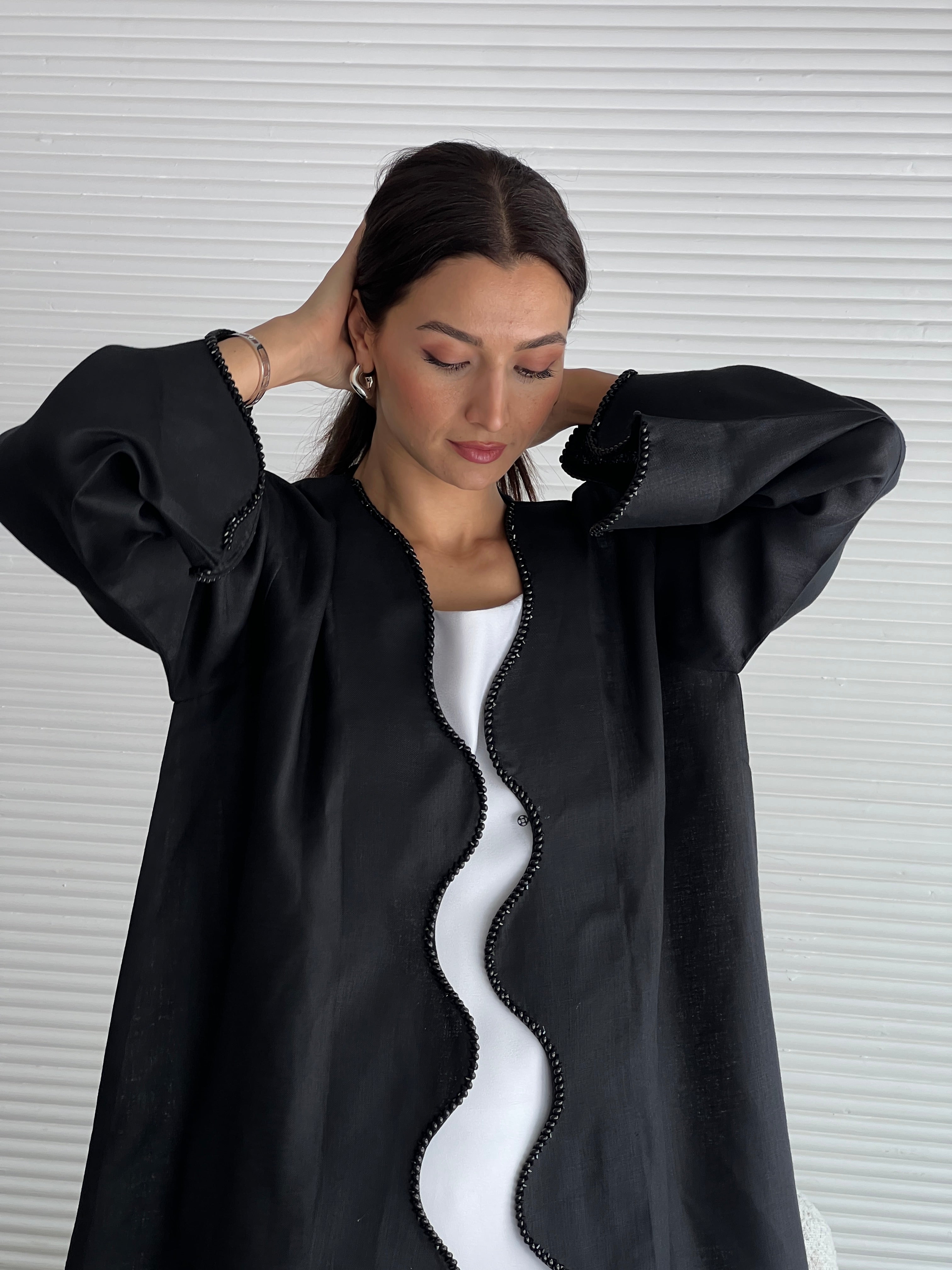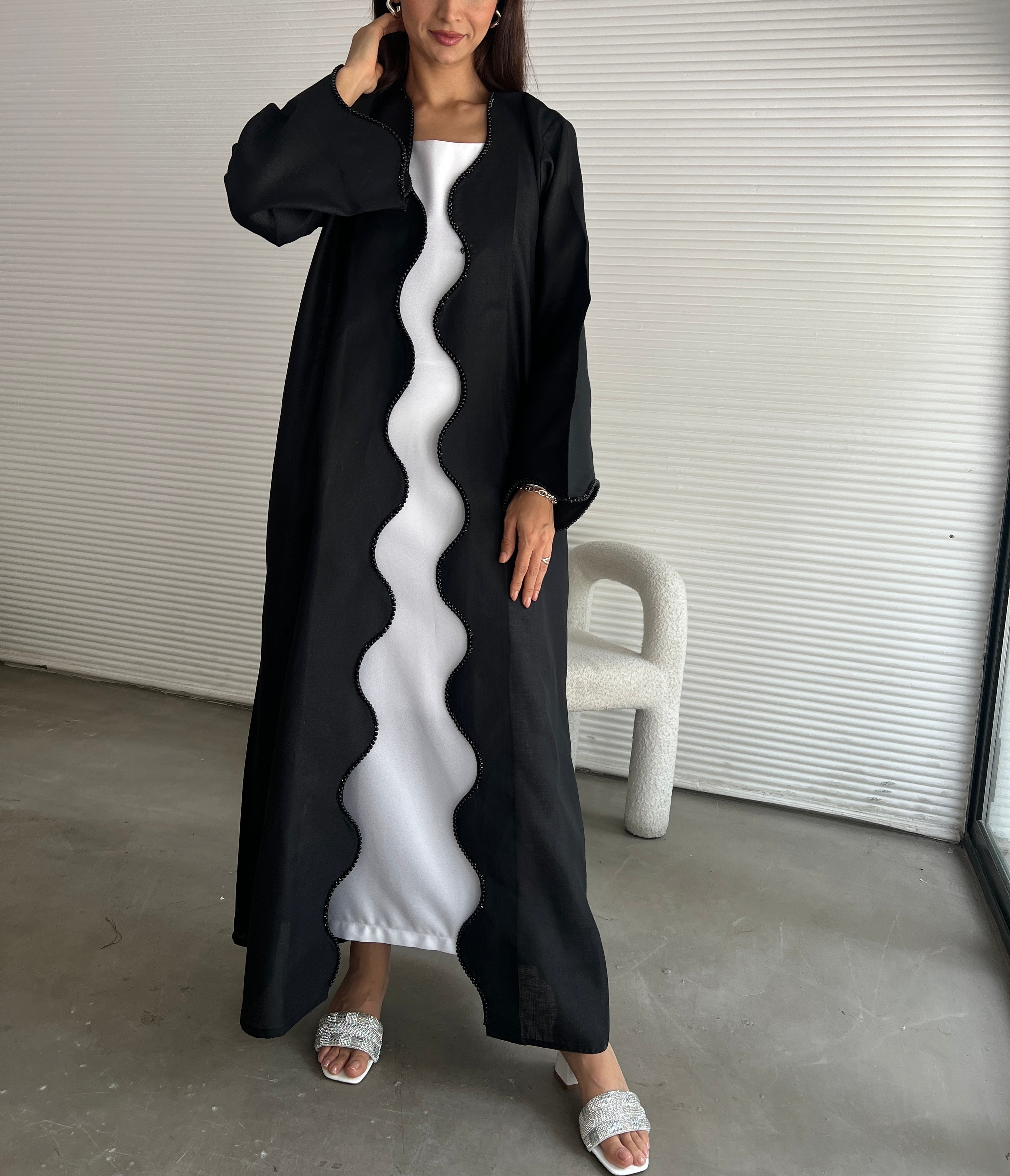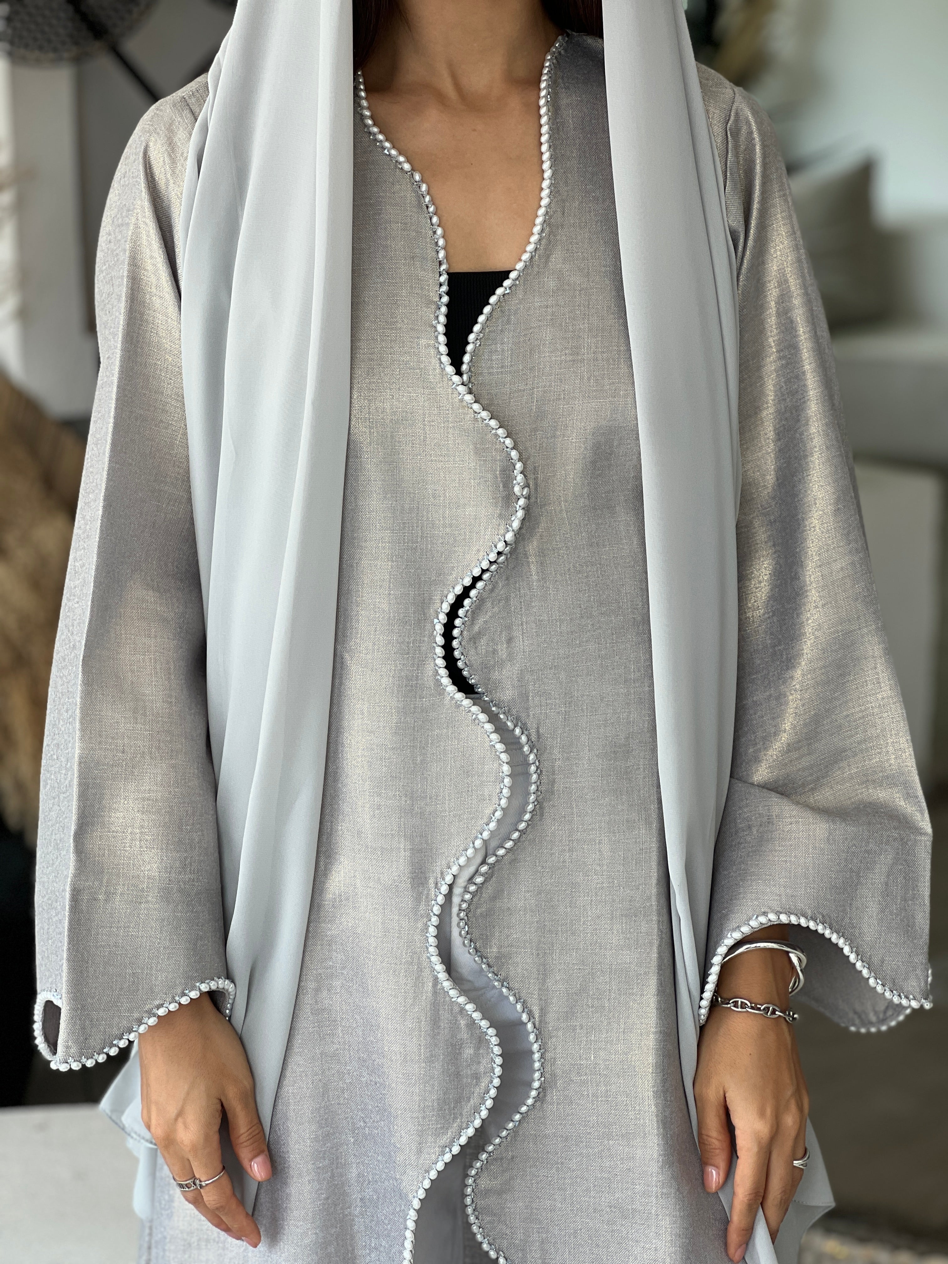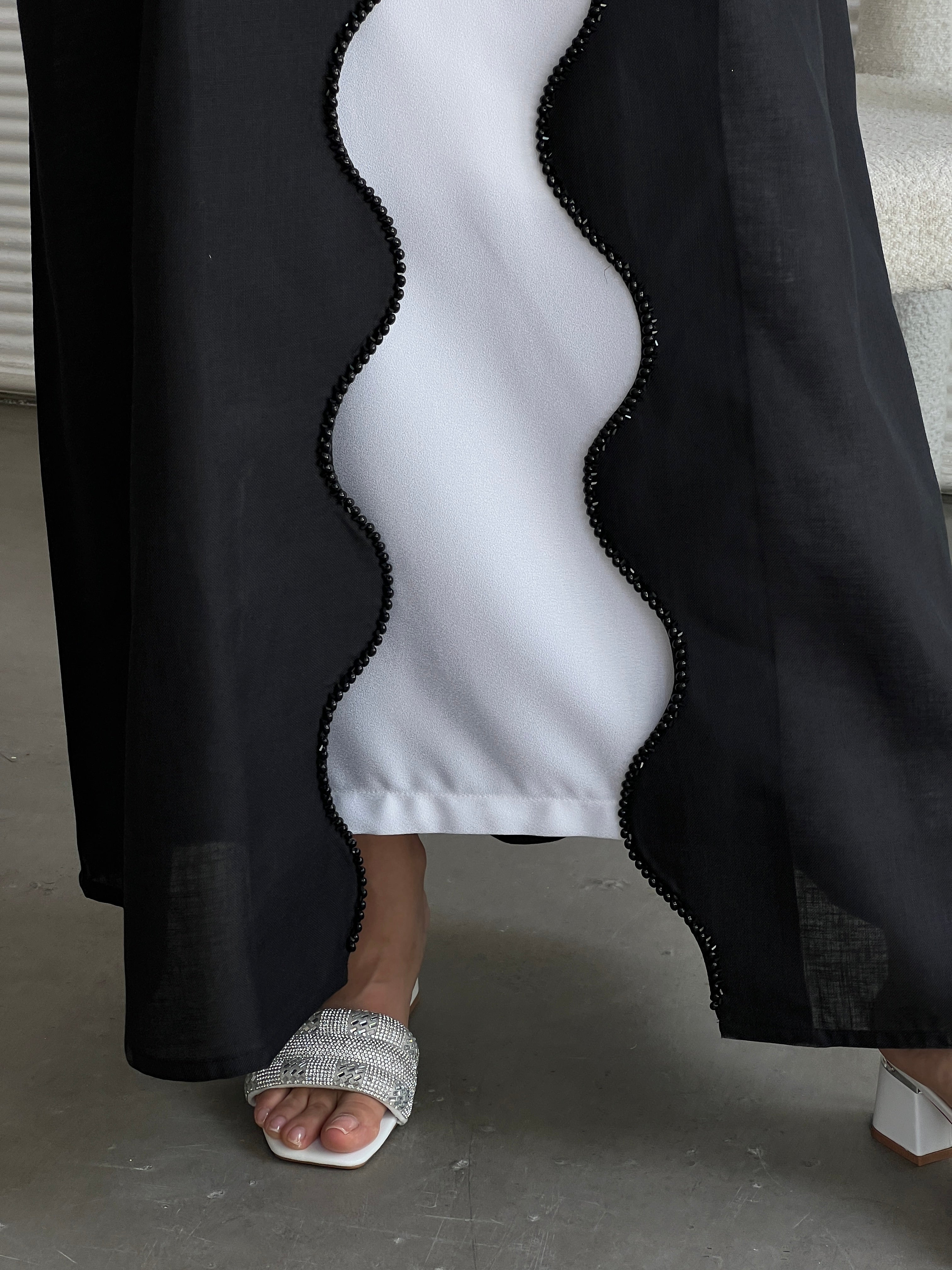 GOLBARG Black With Silver Handwork Abaya - Contessa Collection