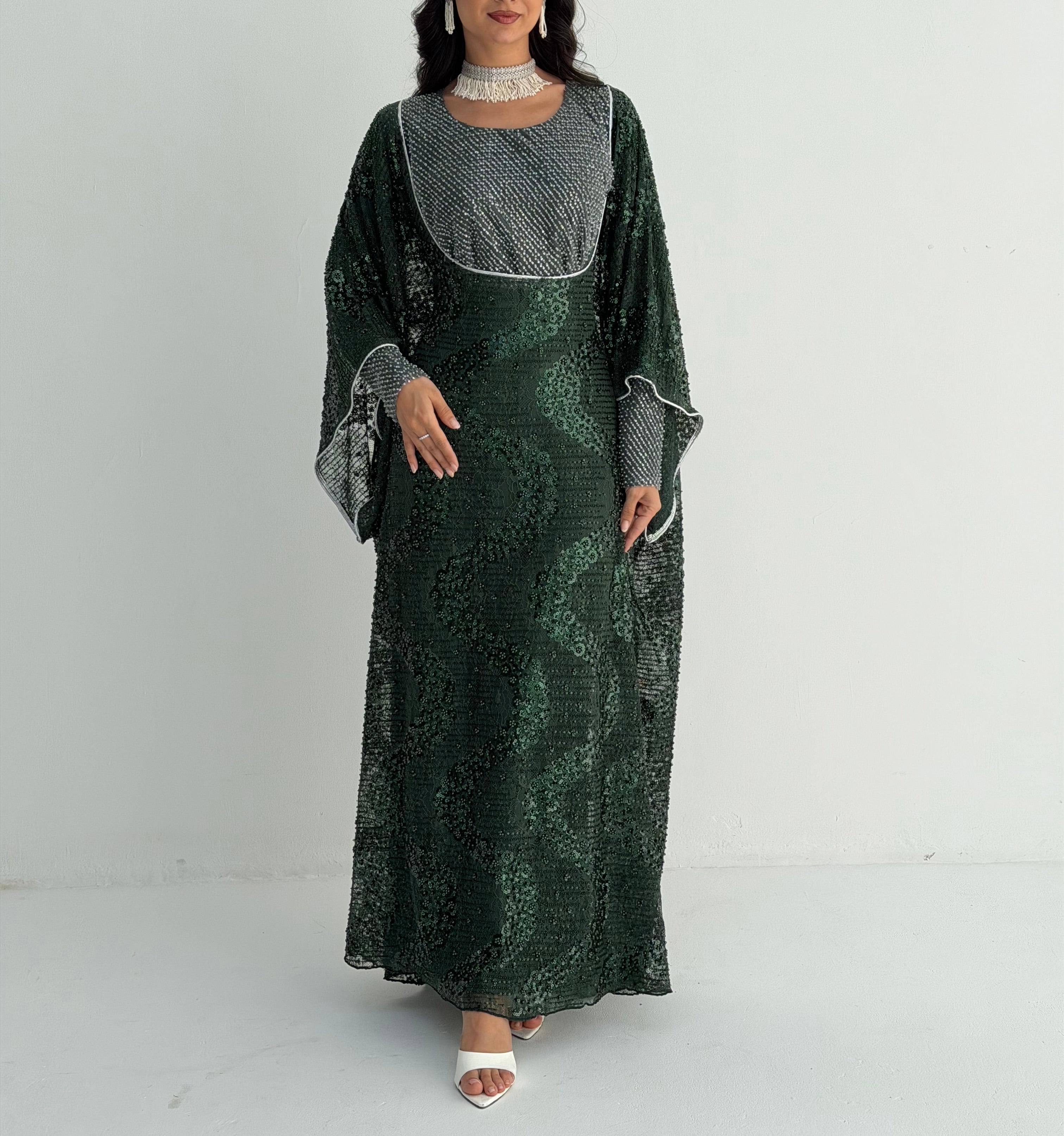 Elevate your wardrobe with the Layaly Emarati Thob. Embrace the elegance of tradition with a modern touch. Order yours today and experience the beauty of Emirati culture!