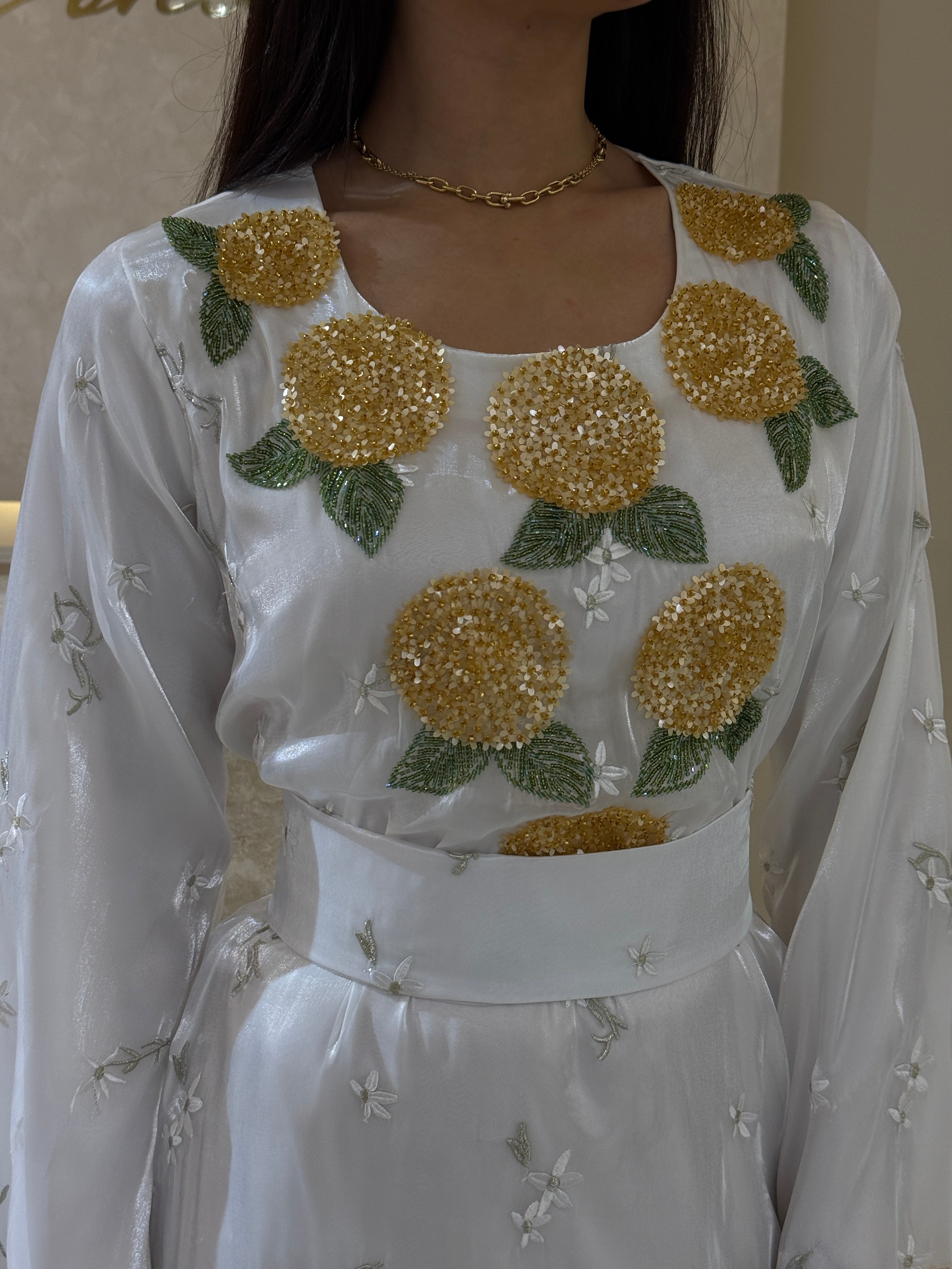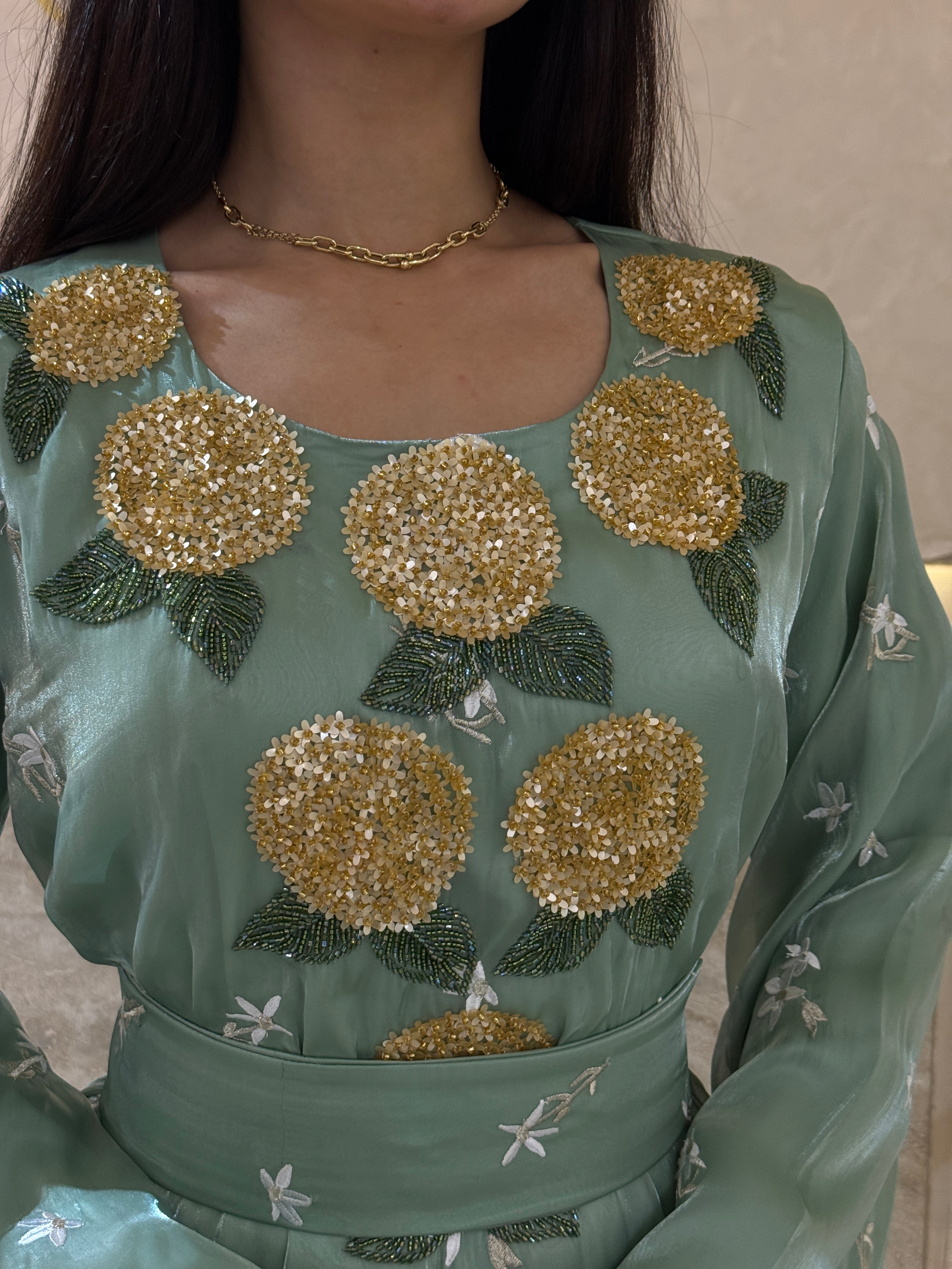 The NEGAR Dress is crafted from soft organza fabric, offering a delicate and lightweight feel ideal for elegant occasions. It features intricate handwork with beads and sequins, adding a refined sparkle and texture that highlights expert craftsmanship. This dress is customizable, allowing you to tailor details to your preferences for a perfect fit and personalized style. Combining luxurious materials with meticulous embellishments, the NEGAR Dress ensures a sophisticated and unique look for any special event.