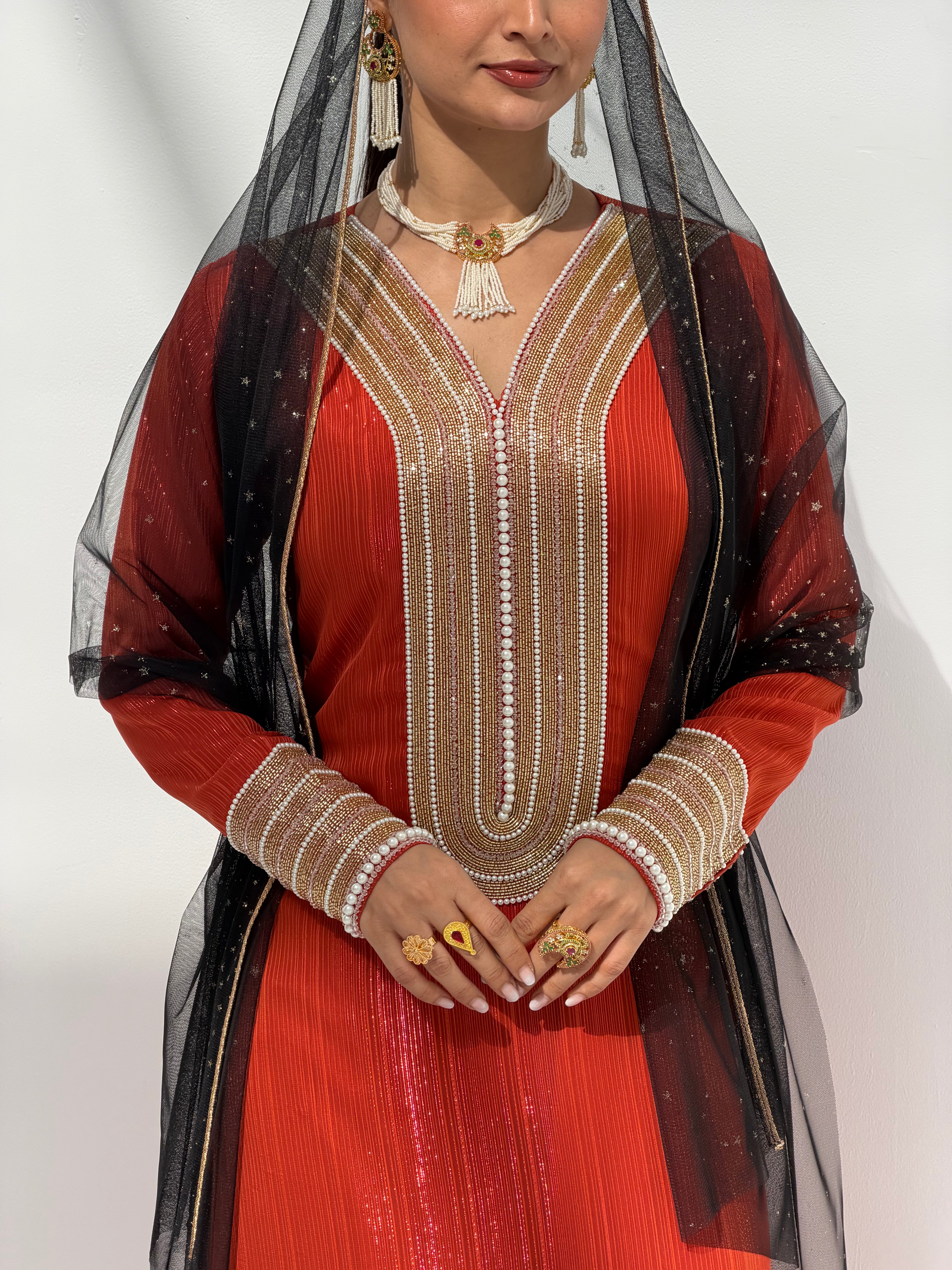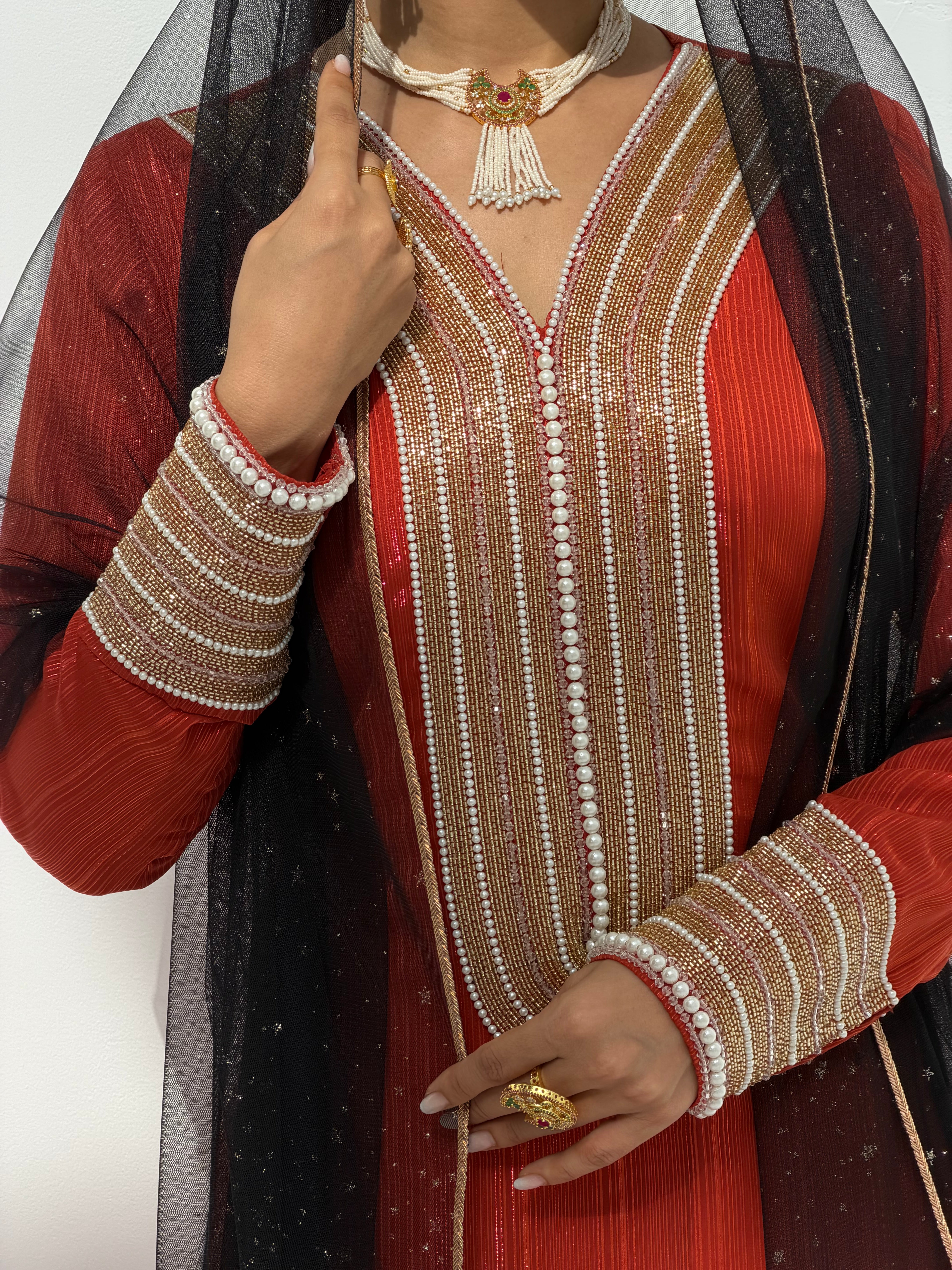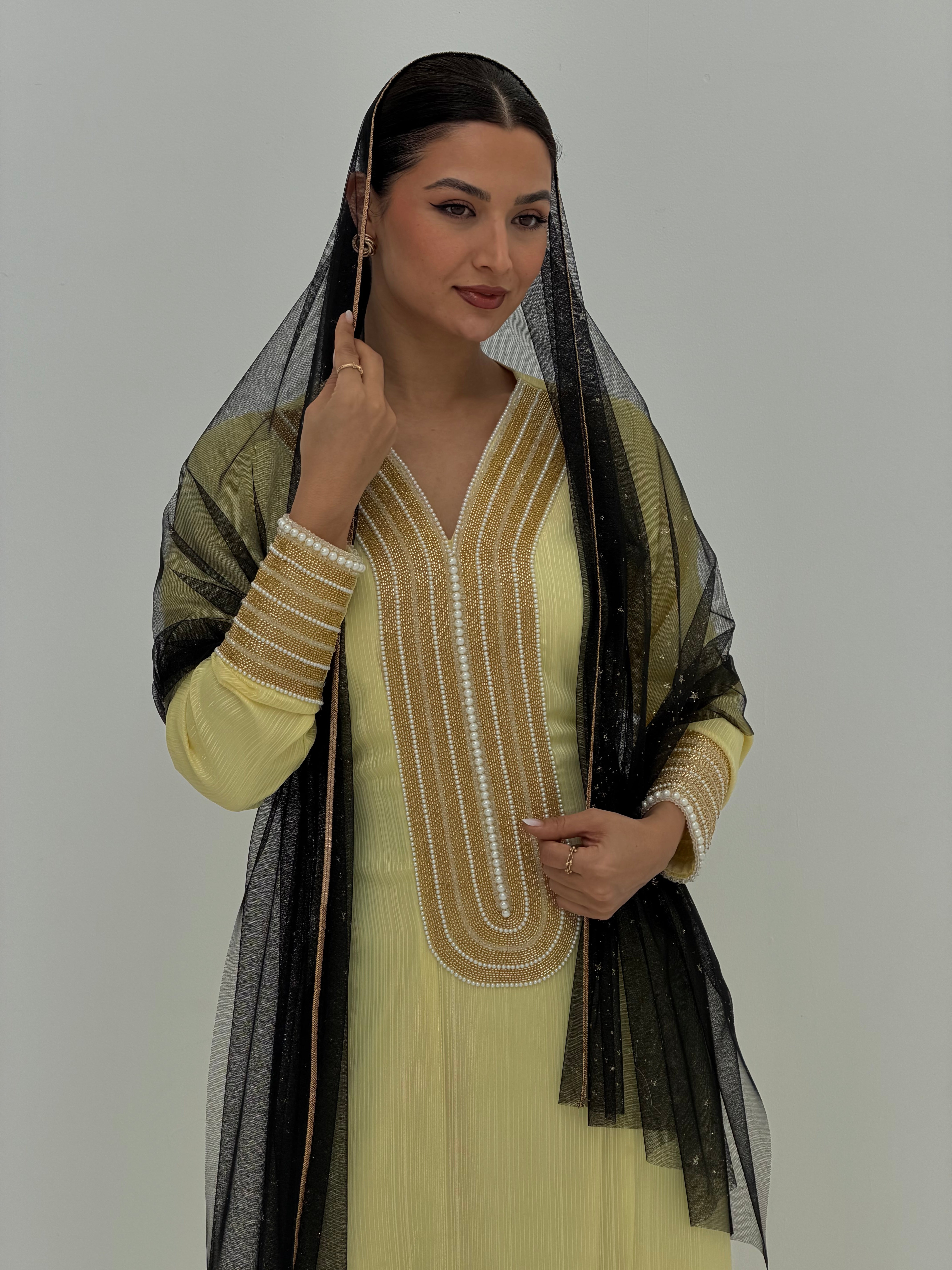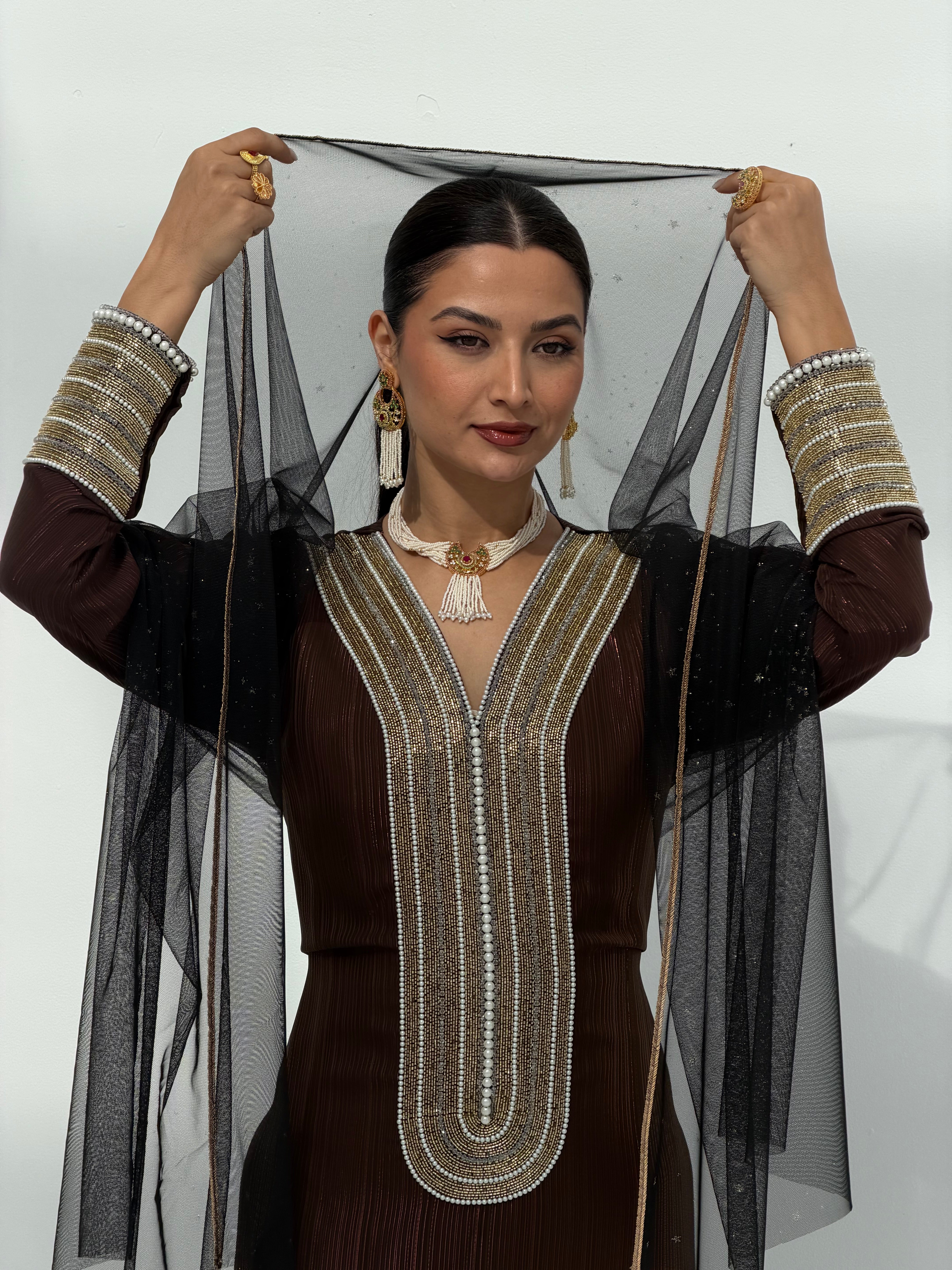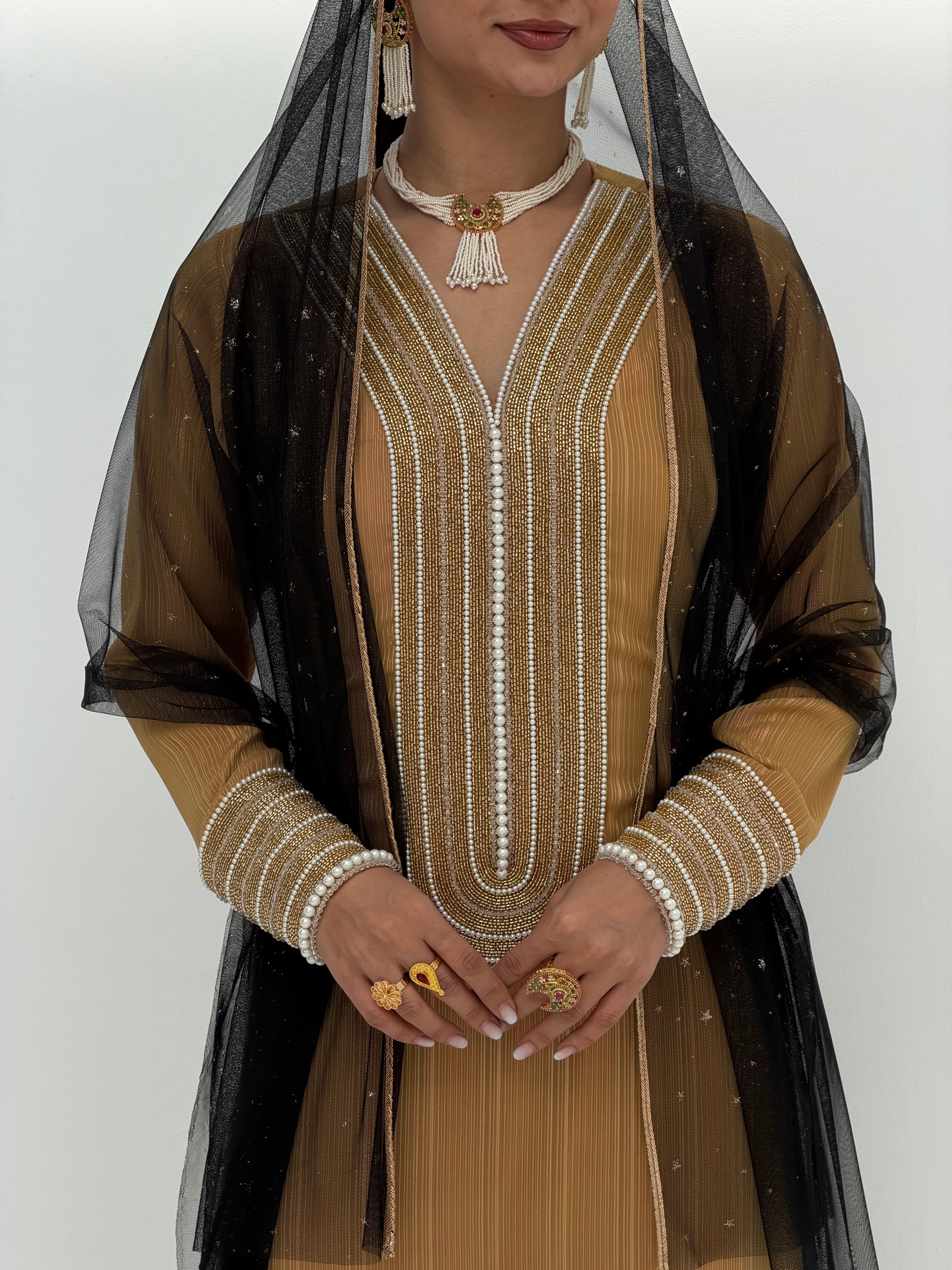 this piece is entirely hand-embellished with delicate pearls and beadwork.